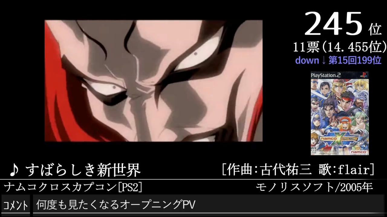 低レアキャラに別スキン追加頼むよぉ(リディアたんちゅっちゅ<br>---------------------------------<br>スクリーンショット大募集!<br>詳しくは下記投稿フォームのご案内やスクショ状況スプレッドシート等をご確認下さい<br>↓<br><a href="https://ws.formzu.net/dist/S9500351/" target="_blank" rel="noopener nofollow">https://ws.formzu.net/dist/S9500351/</a><br><br>投票結果はこちら<br>↓<br><a href="https://w.atwiki.jp/gamemusicbest100/pages/10214.html" target="_blank" rel="noopener nofollow">https://w.atwiki.jp/gamemusicbest100/pages/10214.html</a><br><br>ご質問等ある際はこちらのページへコメント下さいませ<br>↓<br><a href="https://arutoneriko2.hatenablog.com/entry/2023/12/17/001849" target="_blank" rel="noopener nofollow">https://arutoneriko2.hatenablog.com/entry/2023/12/17/001849</a><br>---------------------------------<br><a href="https://www.nicovideo.jp/watch/sm44692356" class="watch">sm44692356</a>←Part30|今回|Part32→<a href="https://www.nicovideo.jp/watch/sm44782286" class="watch">sm44782286</a> <a href="https://www.nicovideo.jp/mylist/50993049" target="_blank" rel="noopener">mylist/50993049</a><br>---------------------------------<br>↓ショートカット↓<br><br>268位<a href="#" class="seekTime" data-seekTime="0:31" onclick="seekNicoPlayer('#0:31'); return false;">#0:31</a> 267位<a href="#" class="seekTime" data-seekTime="2:41" onclick="seekNicoPlayer('#2:41'); return false;">#2:41</a> 266位<a href="#" class="seekTime" data-seekTime="4:51" onclick="seekNicoPlayer('#4:51'); return false;">#4:51</a> 265位<a href="#" class="seekTime" data-seekTime="6:20" onclick="seekNicoPlayer('#6:20'); return false;">#6:20</a> 264位<a href="#" class="seekTime" data-seekTime="8:01" onclick="seekNicoPlayer('#8:01'); return false;">#8:01</a> 263位<a href="#" class="seekTime" data-seekTime="11:05" onclick="seekNicoPlayer('#11:05'); return false;">#11:05</a><br>262位<a href="#" class="seekTime" data-seekTime="13:19" onclick="seekNicoPlayer('#13:19'); return false;">#13:19</a> 261位<a href="#" class="seekTime" data-seekTime="17:11" onclick="seekNicoPlayer('#17:11'); return false;">#17:11</a> 260位<a href="#" class="seekTime" data-seekTime="20:09" onclick="seekNicoPlayer('#20:09'); return false;">#20:09</a> 259位<a href="#" class="seekTime" data-seekTime="22:40" onclick="seekNicoPlayer('#22:40'); return false;">#22:40</a> 257位<a href="#" class="seekTime" data-seekTime="24:42" onclick="seekNicoPlayer('#24:42'); return false;">#24:42</a> 257位<a href="#" class="seekTime" data-seekTime="26:56" onclick="seekNicoPlayer('#26:56'); return false;">#26:56</a><br>256位<a href="#" class="seekTime" data-seekTime="29:58" onclick="seekNicoPlayer('#29:58'); return false;">#29:58</a> 255位<a href="#" class="seekTime" data-seekTime="32:22" onclick="seekNicoPlayer('#32:22'); return false;">#32:22</a> 254位<a href="#" class="seekTime" data-seekTime="35:14" onclick="seekNicoPlayer('#35:14'); return false;">#35:14</a> 253位<a href="#" class="seekTime" data-seekTime="37:55" onclick="seekNicoPlayer('#37:55'); return false;">#37:55</a> 252位<a href="#" class="seekTime" data-seekTime="40:19" onclick="seekNicoPlayer('#40:19'); return false;">#40:19</a> 251位<a href="#" class="seekTime" data-seekTime="43:57" onclick="seekNicoPlayer('#43:57'); return false;">#43:57</a><br>250位<a href="#" class="seekTime" data-seekTime="47:54" onclick="seekNicoPlayer('#47:54'); return false;">#47:54</a> 249位<a href="#" class="seekTime" data-seekTime="49:44" onclick="seekNicoPlayer('#49:44'); return false;">#49:44</a> 248位<a href="#" class="seekTime" data-seekTime="55:16" onclick="seekNicoPlayer('#55:16'); return false;">#55:16</a> 247位<a href="#" class="seekTime" data-seekTime="57:40" onclick="seekNicoPlayer('#57:40'); return false;">#57:40</a> 246位<a href="#" class="seekTime" data-seekTime="61:08" onclick="seekNicoPlayer('#61:08'); return false;">#61:08</a> 245位<a href="#" class="seekTime" data-seekTime="63:13" onclick="seekNicoPlayer('#63:13'); return false;">#63:13</a>