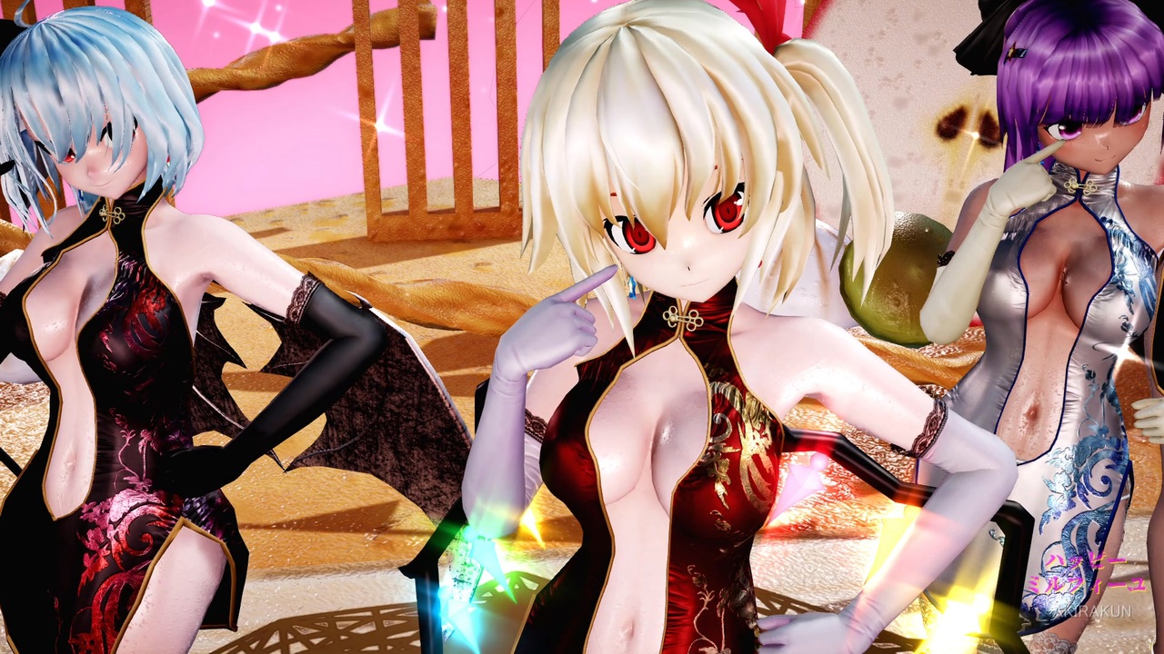 フラン・レミリア・パチュリー・こあ・ここあの5人に踊ってもらいました。この作品は「東方project」の2次創作です。現在、作成リクエストは受け付けていません。<br><br><br>【楽曲】:「ハッピーミルフィーユ」Official Music Video:<a href="https://www.nicovideo.jp/watch/so44598485" class="watch">so44598485</a><br><br>【振付・トレス元】:<a href="https://www.nicovideo.jp/watch/so44598536" class="watch">so44598536</a><br><br>【モーション】:こっちゃ様 <a href="https://www.nicovideo.jp/watch/sm44709376" class="watch">sm44709376</a><br><br>【カメラ】:AKIRAKUN 作ってみました<br><br><br>■ステージ<br>Millefeuille:oage 様 <a href="https://seiga.nicovideo.jp/seiga/im11010601" target="_blank" rel="noopener">im11010601</a><br><br>■モデル<br>パチュリー、小悪魔:アールビット様<br>フランドール・スカーレット:すけ様<br>J・レミリアver1.0:J・クレイ様<br>・衣装:アールビット様<br><br>■エフェクト<br>Ray-mmd-1.5.2:Rui様<br>初心者マテリアル:さらしな様<br>肌マテリアル:MARUSU様<br>AutoLuminous4:そぼろ様<br>空中に漂う埃:化身バレッタ様<br>ikBokeh_v020a:ikeno様<br><br><br>MikuMikuDance:樋口優様<br>MMEffect :舞力介入P様<br>PMDE、PmxE:極北P様<br>AviUtl :KENくん様<br>・Aviutl + x264guiExでエンコード:rigaya様<br>Ut Video Codec suite:ゆーむP様<br>上海アリス幻楽団・東方project(ZUN様)<br><br><br>mylist ③<a href="https://www.nicovideo.jp/mylist/75586824" target="_blank" rel="noopener">mylist/75586824</a> ② <a href="https://www.nicovideo.jp/mylist/72970530" target="_blank" rel="noopener">mylist/72970530</a> ① <a href="https://www.nicovideo.jp/mylist/63690967" target="_blank" rel="noopener">mylist/63690967</a> 旧 <a href="https://www.nicovideo.jp/mylist/61238351" target="_blank" rel="noopener">mylist/61238351</a><br><br> ※動画の転載は禁止です。<br>Attention,Unauthorized reproduction prohibited!!