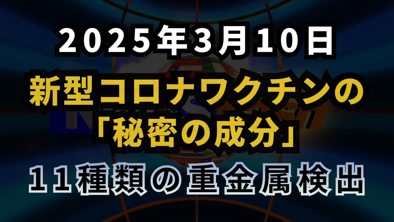 ◆ 新型コロナワクチンの「秘密の成分」が発見される。申告されていない元素の中には、11種類の重金属すべてが含まれていました。まるこまるさんの投稿<br><a href="https://x.com/marukomaru777/status/1898290580092076164?t=q2Mu8C69oH1th2OBeVvWjA&s=19" target="_blank" rel="noopener nofollow">https://x.com/marukomaru777/status/1898290580092076164?t=q2Mu8C69oH1th2OBeVvWjA&s=19</a><br><br><br>◆ 新型コロナワクチンの「秘密の成分」:重金属検出<br><a href="https://x.com/i/grok/share/K5Z8EketJAgJsozmVx7s5GHp2" target="_blank" rel="noopener nofollow">https://x.com/i/grok/share/K5Z8EketJAgJsozmVx7s5GHp2</a><br><br><br>参考URL<br>関連研究(ResearchGate):<a href="https://www.researchgate.net/publication/384429876_At_Least_55_Undeclared_Chemical_Elements_Found_in_COVID-19_Vaccines_from_AstraZeneca_CanSino_Moderna_Pfizer_Sinopharm_and_Sputnik_V_with_Precise_ICP-MS" target="_blank" rel="noopener nofollow">https://www.researchgate.net/publication/384429876_At_Least_55_Undeclared_Chemical_Elements_Found_in_COVID-19_Vaccines_from_AstraZeneca_CanSino_Moderna_Pfizer_Sinopharm_and_Sputnik_V_with_Precise_ICP-MS</a><br><br>英国政府の情報開示(GOV.UK):<a href="https://www.gov.uk/government/publications/freedom-of-information-responses-from-the-mhra-week-commencing-20-june-2022/freedom-of-information-request-on-whether-or-not-metals-of-any-nature-are-added-to-the-covid-19-vaccines-foi-22749" target="_blank" rel="noopener nofollow">https://www.gov.uk/government/publications/freedom-of-information-responses-from-the-mhra-week-commencing-20-june-2022/freedom-of-information-request-on-whether-or-not-metals-of-any-nature-are-added-to-the-covid-19-vaccines-foi-22749</a><br><br><br>今回の台本<br><a href="https://keiichiro8140.hatenablog.com/entry/2025/03/10/112727?_gl=1*mtip6c*_gcl_au*NDQ1MDIzNjI1LjE3MzQzMjI4MDY." target="_blank" rel="noopener nofollow">https://keiichiro8140.hatenablog.com/entry/2025/03/10/112727?_gl=1*mtip6c*_gcl_au*NDQ1MDIzNjI1LjE3MzQzMjI4MDY.</a><br><br><br>新型コロナウイルス<br>ワクチン<br>重金属<br>健康<br>陰謀論<br>科学<br>研究<br>安全性<br>デトックス<br>ニュース<br>真実<br><br />著作権、肖像権に配慮して作成しております。<br><br>◆気になったニュースの台本!?<br>メモ代わりに作った台本をそのままあげてます<br><a href="https://keiichiro8140.hatenablog.com/." target="_blank" rel="noopener nofollow">https://keiichiro8140.hatenablog.com/.</a><br><br><br>ここからはシリーズ紹介<br><br><br>◆ ワクチン解毒・デトックス<br><a href="https://x.gd/fZweg" target="_blank" rel="noopener nofollow">https://x.gd/fZweg</a><br><br>◆ウイリアム・マキス博士のがん治療(イベルメクチン・フェンベンダゾール等)<br><a href="https://x.gd/AtFYS" target="_blank" rel="noopener nofollow">https://x.gd/AtFYS</a><br><br>◆予防接種健康被害救済制度<br><a href="https://x.gd/0xK9x" target="_blank" rel="noopener nofollow">https://x.gd/0xK9x</a><br><br>◆気になったニュース #1501~<br><br>◆ 【ショートver】気になったニュース<br><a href="https://x.gd/7MxXC" target="_blank" rel="noopener nofollow">https://x.gd/7MxXC</a><br><br>◆ 気になったニュース #1001~<br><a href="https://x.gd/Lp8gv" target="_blank" rel="noopener nofollow">https://x.gd/Lp8gv</a><br><br>◆ 気になったニュース #501~<br><a href="https://x.gd/EmbS4" target="_blank" rel="noopener nofollow">https://x.gd/EmbS4</a><br><br>◆ 気になったニュース #1~#500<br><a href="https://x.gd/uPhNb" target="_blank" rel="noopener nofollow">https://x.gd/uPhNb</a><br><br>◆ X(旧Twitter)・テレグラムで気になった情報<br><a href="https://x.gd/YG6FT" target="_blank" rel="noopener nofollow">https://x.gd/YG6FT</a><br><br>◆ 日比谷5万人パレードデ⚪生放送アーカイブ動画<br><a href="https://x.gd/3CHJv" target="_blank" rel="noopener nofollow">https://x.gd/3CHJv</a><br><br>◆日比谷5万人パレード⚪モのマイリスト作ってみました<br><a href="https://nico.ms/mylist/76828848?ref=sp_other" target="_blank" rel="noopener nofollow">https://nico.ms/mylist/76828848?ref=sp_other</a><br><br>◆3.30 令和の百姓⚪⚪<br><a href="https://www.nicovideo.jp/series/511791?ref=garage_share_other" target="_blank" rel="noopener nofollow">https://www.nicovideo.jp/series/511791?ref=garage_share_other</a><br><br>◆ 及川幸久さんの【XNEWS】シリーズ<br><a href="https://x.gd/3k78K" target="_blank" rel="noopener nofollow">https://x.gd/3k78K</a><br><br>◆これまでの動画<a href="https://x.gd/sPXoJ" target="_blank" rel="noopener nofollow">https://x.gd/sPXoJ</a><br><br>◆もしも(BAN)の時のためのマイリンク集<a href="https://lit.link/K-16_News44" target="_blank" rel="noopener nofollow">https://lit.link/K-16_News44</a><br><br>