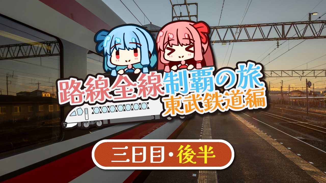 <span style="color: #4a86e8; font-size: 16px;"><strong><その6:3日目・後半> </strong></span><br><span style="font-size: 16px;"><strong>後半戦は館林駅からスタート!伊勢崎線とその支線たちを駆け巡ります!</strong></span><br><br><br><strong>次:<a href="https://www.nicovideo.jp/watch/sm44769732" class="watch">sm44769732</a></strong> <br>前:<a href="https://www.nicovideo.jp/watch/sm44723863" class="watch">sm44723863</a> <br><br><br>シリーズ:<a href="https://www.nicovideo.jp/series/504487" target="_blank" rel="noopener">series/504487</a><br><br><br><立ち絵><br>・アジサバ様「琴葉姉妹SD立ち絵Ver.1.2」:<a href="https://seiga.nicovideo.jp/seiga/im11483635" target="_blank" rel="noopener">im11483635</a><br><br><BGM><br>・BGMer様<br>・DOVA-SYNDROME様 より<br /><br>ーーー連続動画シリーズーーー<br>・国内旅行<br><a href="https://www.nicovideo.jp/series/360498" target="_blank" rel="noopener">series/360498</a> 「日本鉄道小旅行」(完結済)<br><a href="https://www.nicovideo.jp/series/400418" target="_blank" rel="noopener">series/400418</a> 「青春18きっぷと私鉄の旅」(完結済)<br><a href="https://www.nicovideo.jp/series/443015" target="_blank" rel="noopener">series/443015</a> 「あかりのとっとこツアー」(不定期更新)<br><br>・私鉄旅シリーズ<br><a href="https://www.nicovideo.jp/series/460437" target="_blank" rel="noopener">series/460437</a> 「小田急全線制覇の道」(完結済)<br><a href="https://www.nicovideo.jp/series/504487" target="_blank" rel="noopener">series/504487</a> 「私鉄路線制覇シリーズ」(5/16社制覇&番外編)<strong><更新中></strong><br><br>・海外旅行<br><a href="https://www.nicovideo.jp/series/371764" target="_blank" rel="noopener">series/371764</a> 「オーストリアで鉄道たっぷり旅」(完結済)<br><a href="https://www.nicovideo.jp/series/414055" target="_blank" rel="noopener">series/414055</a> 「あかあお調査団のオーストリア珍道中!?」(完結済)<br><a href="https://www.nicovideo.jp/series/467200" target="_blank" rel="noopener">series/467200</a> 「夜行列車乗り比べ紀行」(完結済)<br><a href="https://www.nicovideo.jp/series/511896" target="_blank" rel="noopener">series/511896</a> 「ぐるっと周るヨーロッパ鉄道旅」(完結済)<br><br>ーーーその他の動画ーーー<br><br>・海外鉄道動画<br><a href="https://www.nicovideo.jp/series/284711" target="_blank" rel="noopener">series/284711</a> 「オーストリア鉄道関連」シリーズ<br><br><br>ーーー旅行Part1まとめマイリストーーー<br><a href="https://www.nicovideo.jp/mylist/74775134" target="_blank" rel="noopener">mylist/74775134</a><br><br><br>ーーー同人誌Boothのショップページはこちらーーー<br><a href="https://austria-train.booth.pm/" target="_blank" rel="noopener nofollow">https://austria-train.booth.pm/</a><br><br><br><a target="_blank" href="https://qa.nicovideo.jp/faq/show/19424?site_domain=default" style="font-size: 13px;color: #657586; text-decoration: underline; line-height: 1.4">この動画は投稿者によって修正されました</a>