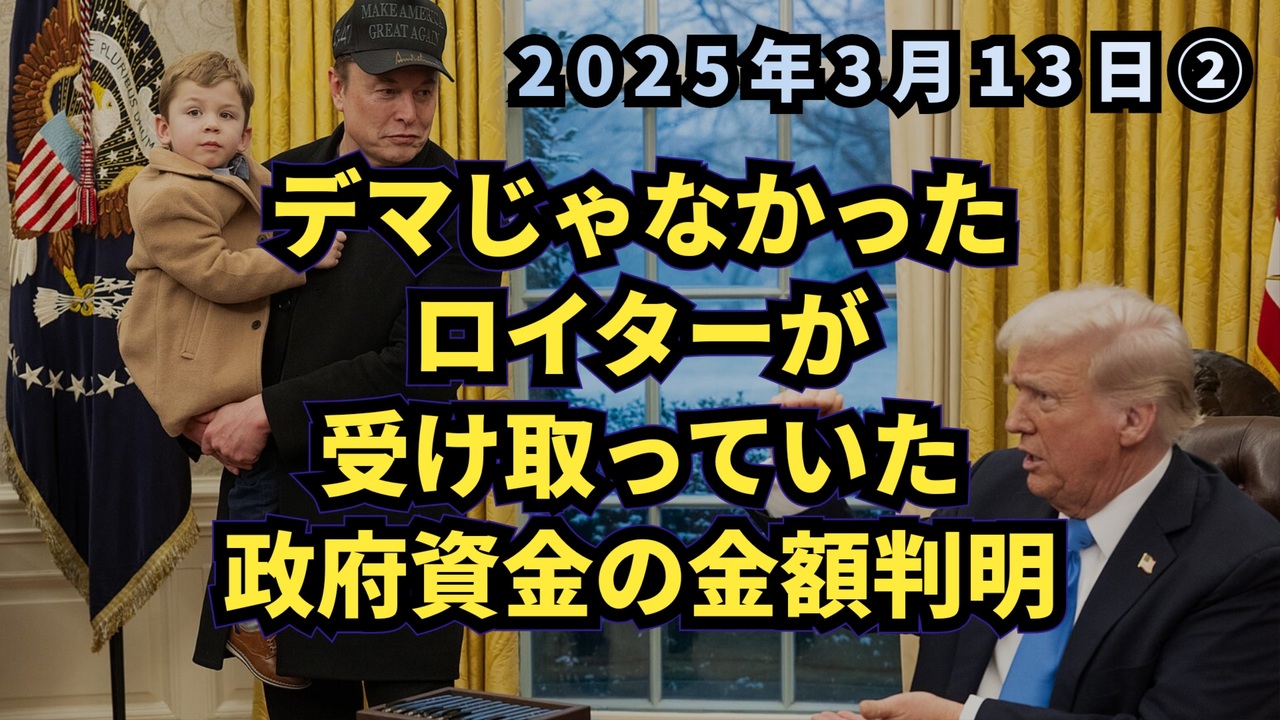 ◆ ロイターへの政府資金流入…驚愕の総額とは? <br><a href="https://x.com/w2skwn3/status/1899851193712853400?t=tbRiGhao4y-aJVNSmXCUdQ&s=19" target="_blank" rel="noopener nofollow">https://x.com/w2skwn3/status/1899851193712853400?t=tbRiGhao4y-aJVNSmXCUdQ&s=19</a><br><br><br>◆ アメリカの税金がメディアへ…<br><a href="https://t.co/4HbovsXSJu" target="_blank" rel="noopener nofollow">https://t.co/4HbovsXSJu</a><br><br><br>◆ 今回の台本<br><a href="https://keiichiro8140.hatenablog.com/entry/2025/03/13/145309?_gl=1*1wwvsgi*_gcl_au*NDQ1MDIzNjI1LjE3MzQzMjI4MDY." target="_blank" rel="noopener nofollow">https://keiichiro8140.hatenablog.com/entry/2025/03/13/145309?_gl=1*1wwvsgi*_gcl_au*NDQ1MDIzNjI1LjE3MzQzMjI4MDY.</a><br><br><br>メディアと政府資金<br>ロイター<br>税金の行方<br>イーロン・マスク<br>報道の自由<br>情報操作<br>プロパガンダ<br>政府とメディアの関係<br>マスメディアの闇<br>米国政府支出<br>ジャーナリズムの信頼性<br><br><br>マイリンク<br><a href="https://lit.link/keiichiro8140" target="_blank" rel="noopener nofollow">https://lit.link/keiichiro8140</a><br><br><br>イーロン・マスクとお子さんとトランプ大統領<br><a href="https://commons.m.wikimedia.org/wiki/File:X_%C3%86_A-Xii,_Elon_Musk_and_Donald_Trump_in_the_Oval_Office_-_P20250207DT-0103_(54320797642).jpg" target="_blank" rel="noopener nofollow">https://commons.m.wikimedia.org/wiki/File:X_%C3%86_A-Xii,_Elon_Musk_and_Donald_Trump_in_the_Oval_Office_-_P20250207DT-0103_(54320797642).jpg</a><br><br />著作権、肖像権に配慮して作成しております。<br><br>◆気になったニュースの台本!?<br>メモ代わりに作った台本をそのままあげてます<br><a href="https://keiichiro8140.hatenablog.com/." target="_blank" rel="noopener nofollow">https://keiichiro8140.hatenablog.com/.</a><br><br><br>ここからはシリーズ紹介<br><br><br>◆ ワクチン解毒・デトックス<br><a href="https://x.gd/fZweg" target="_blank" rel="noopener nofollow">https://x.gd/fZweg</a><br><br>◆ウイリアム・マキス博士のがん治療(イベルメクチン・フェンベンダゾール等)<br><a href="https://x.gd/AtFYS" target="_blank" rel="noopener nofollow">https://x.gd/AtFYS</a><br><br>◆予防接種健康被害救済制度<br><a href="https://x.gd/0xK9x" target="_blank" rel="noopener nofollow">https://x.gd/0xK9x</a><br><br>◆気になったニュース #1501~<br><br>◆ 【ショートver】気になったニュース<br><a href="https://x.gd/7MxXC" target="_blank" rel="noopener nofollow">https://x.gd/7MxXC</a><br><br>◆ 気になったニュース #1001~<br><a href="https://x.gd/Lp8gv" target="_blank" rel="noopener nofollow">https://x.gd/Lp8gv</a><br><br>◆ 気になったニュース #501~<br><a href="https://x.gd/EmbS4" target="_blank" rel="noopener nofollow">https://x.gd/EmbS4</a><br><br>◆ 気になったニュース #1~#500<br><a href="https://x.gd/uPhNb" target="_blank" rel="noopener nofollow">https://x.gd/uPhNb</a><br><br>◆ X(旧Twitter)・テレグラムで気になった情報<br><a href="https://x.gd/YG6FT" target="_blank" rel="noopener nofollow">https://x.gd/YG6FT</a><br><br>◆ 日比谷5万人パレードデ⚪生放送アーカイブ動画<br><a href="https://x.gd/3CHJv" target="_blank" rel="noopener nofollow">https://x.gd/3CHJv</a><br><br>◆日比谷5万人パレード⚪モのマイリスト作ってみました<br><a href="https://nico.ms/mylist/76828848?ref=sp_other" target="_blank" rel="noopener nofollow">https://nico.ms/mylist/76828848?ref=sp_other</a><br><br>◆3.30 令和の百姓⚪⚪<br><a href="https://www.nicovideo.jp/series/511791?ref=garage_share_other" target="_blank" rel="noopener nofollow">https://www.nicovideo.jp/series/511791?ref=garage_share_other</a><br><br>◆ 及川幸久さんの【XNEWS】シリーズ<br><a href="https://x.gd/3k78K" target="_blank" rel="noopener nofollow">https://x.gd/3k78K</a><br><br>◆これまでの動画<a href="https://x.gd/sPXoJ" target="_blank" rel="noopener nofollow">https://x.gd/sPXoJ</a><br><br>◆もしも(BAN)の時のためのマイリンク集<a href="https://lit.link/K-16_News44" target="_blank" rel="noopener nofollow">https://lit.link/K-16_News44</a><br><br>