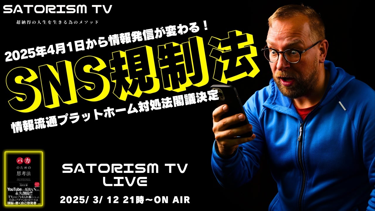■有料会員制 動画チャンネル「SATORISM GOLDEN TV」<br>特別動画配信中!<br>入会はコチラ <a href="https://nicochannel.jp/satorism-premium/welcome" target="_blank" rel="noopener nofollow">https://nicochannel.jp/satorism-premium/welcome</a> <br><br>■有料会員様でログインできない等の不具合がある会員様へ<br>ドワンゴ苦情窓口はコチラ <a href="https://help.nicochannel.jp/hc/ja/requests/new?ticket_form_id=4414714831513" target="_blank" rel="noopener nofollow">https://help.nicochannel.jp/hc/ja/requests/new?ticket_form_id=4414714831513</a><br><br>■ANGLE磁気ネックレス 公式オンラインショップ<br><a href="https://c.affitch.com/?ref=PM9XTQJ6QGME" target="_blank" rel="noopener nofollow">https://c.affitch.com/?ref=PM9XTQJ6QGME</a><br><br>■イベント情報‼<br>NEW!!2025年4月6日(日) サトリズム歴史考察「変な本能寺の変」in大阪<br>チケット予約はコチラ <a href="https://peatix.com/event/4302787" target="_blank" rel="noopener nofollow">https://peatix.com/event/4302787</a><br>※合法アドレノクロム大作戦メンバーもチケット予約はしてください!<br> 当日会場にてチケット代全額キャッシュバックします!<br><br>NEW!!2025年3月30日(日) サトリズムプレミアムセッションin渋谷「バウアー家のイルミナティ」<br>ご予約はコチラ <a href="https://satorism20250330.peatix.com" target="_blank" rel="noopener nofollow">https://satorism20250330.peatix.com</a><br><br>2025年3月15日(土) サンワード証券プレゼンツ サトリズム講演会 無料!<br>ご予約はコチラ <a href="https://www.sunward-t.co.jp/seminar/2025/03/15_3/index_k.html" target="_blank" rel="noopener nofollow">https://www.sunward-t.co.jp/seminar/2025/03/15_3/index_k.html</a><br><br>2025年3月22日&23日 札幌講演会withリッキー社長、藤江成光さん<br><br>22日コラボ講演会チケット予約 <br><a href="https://docs.google.com/forms/u/0/d/e/1FAIpQLScU-N-Ml2PYudi8Yrg2orR8fhh0iN6ml_dpU6OnD9_ZC9-MJQ/viewform?pli=1" target="_blank" rel="noopener nofollow">https://docs.google.com/forms/u/0/d/e/1FAIpQLScU-N-Ml2PYudi8Yrg2orR8fhh0iN6ml_dpU6OnD9_ZC9-MJQ/viewform?pli=1</a><br><br>23日単独講演会 キャンセル出ました!