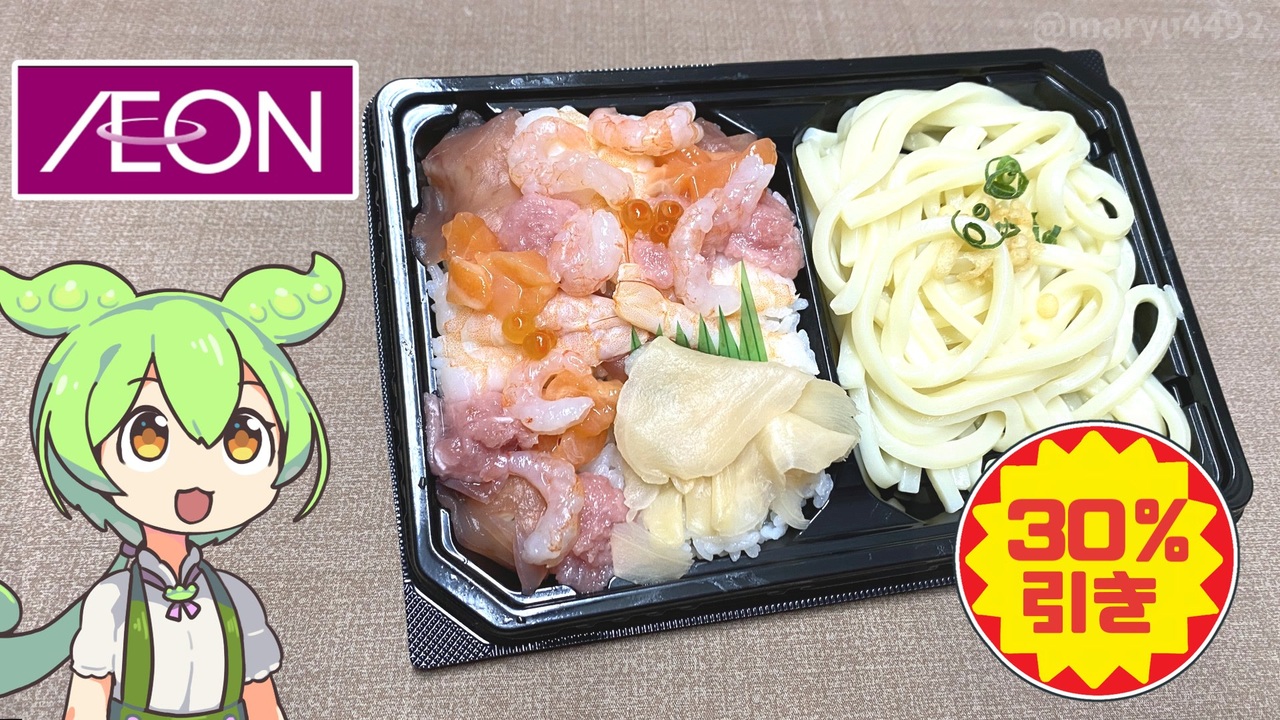 イオンで買った海鮮ばらちらしとうどんのセットです。 <br>お昼を過ぎたあたりに行ったのですが30%に値引きされていたので <br>買ってみることにしました。<br><br><br>【関連動画】<br> ※忌まわしき記憶<br>トップバリュの赤いヤツ「冷やしぶっかけ天ぷらうどん(30%引き)」2023.04.18<br><a href="https://www.nicovideo.jp/watch/sm42091854" target="_blank" rel="noopener nofollow">https://www.nicovideo.jp/watch/sm42091854</a><br>トップバリュの黄色いヤツ「ゆでずに簡単!水でほぐすだけ 細うどん(177円)」2024.08.06<br><a href="https://www.nicovideo.jp/watch/sm43905905" target="_blank" rel="noopener nofollow">https://www.nicovideo.jp/watch/sm43905905</a><br><br>【使用した素材】(※敬称略) <br>(合成音声)VOICEVOX/ずんだもん/四国めたん <br><a href="https://voicevox.hiroshiba.jp/" target="_blank" rel="noopener nofollow">https://voicevox.hiroshiba.jp/</a> <br>(立ち絵)坂本アヒル <br><a href="https://seiga.nicovideo.jp/seiga/im10788496?track" target="_blank" rel="noopener nofollow">https://seiga.nicovideo.jp/seiga/im10788496?track</a> <br>(楽曲)甘茶の音楽工房/「楽しい麦畑」「フルーツパフェ」「お城の舞踏会」「残業戦士」 <br><a href="https://amachamusic.chagasi.co" target="_blank" rel="noopener nofollow">https://amachamusic.chagasi.co</a><br>