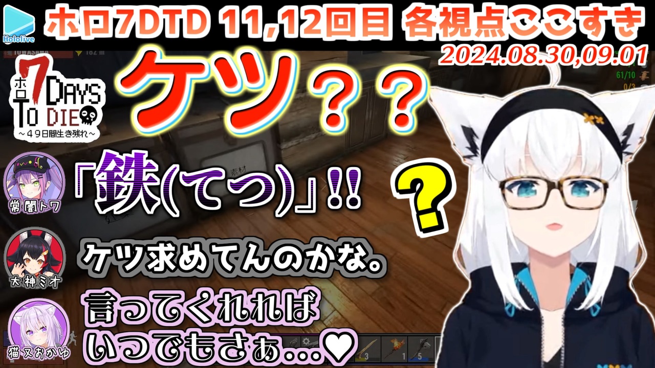 <a href="#" class="seekTime" data-seekTime="00:00" onclick="seekNicoPlayer('#00:00'); return false;">#00:00</a> 鉄です<br><a href="#" class="seekTime" data-seekTime="01:33" onclick="seekNicoPlayer('#01:33'); return false;">#01:33</a> くるま<br><a href="#" class="seekTime" data-seekTime="03:07" onclick="seekNicoPlayer('#03:07'); return false;">#03:07</a> ラピュタ?<br><a href="#" class="seekTime" data-seekTime="03:40" onclick="seekNicoPlayer('#03:40'); return false;">#03:40</a> ワイルドドライブフブにゃ<br><a href="#" class="seekTime" data-seekTime="04:20" onclick="seekNicoPlayer('#04:20'); return false;">#04:20</a> オーガーはすごいらしい<br><a href="#" class="seekTime" data-seekTime="05:30" onclick="seekNicoPlayer('#05:30'); return false;">#05:30</a> ゾンビのマネです<br><a href="#" class="seekTime" data-seekTime="05:57" onclick="seekNicoPlayer('#05:57'); return false;">#05:57</a> フブにゃを◯すなんてできない<br><a href="#" class="seekTime" data-seekTime="06:52" onclick="seekNicoPlayer('#06:52'); return false;">#06:52</a> フブにゃの初爆弾<br><a href="#" class="seekTime" data-seekTime="07:39" onclick="seekNicoPlayer('#07:39'); return false;">#07:39</a> ワイルドドライブその2<br><a href="#" class="seekTime" data-seekTime="09:09" onclick="seekNicoPlayer('#09:09'); return false;">#09:09</a> はじめてのオーガー<br><a href="#" class="seekTime" data-seekTime="10:06" onclick="seekNicoPlayer('#10:06'); return false;">#10:06</a> 第2拠点へ引っ越し<br><a href="#" class="seekTime" data-seekTime="13:21" onclick="seekNicoPlayer('#13:21'); return false;">#13:21</a> フブにゃのために明かりを灯そう<br><a href="#" class="seekTime" data-seekTime="15:03" onclick="seekNicoPlayer('#15:03'); return false;">#15:03</a> 作戦会議<br><a href="#" class="seekTime" data-seekTime="16:22" onclick="seekNicoPlayer('#16:22'); return false;">#16:22</a> スバルログイン<br><a href="#" class="seekTime" data-seekTime="17:38" onclick="seekNicoPlayer('#17:38'); return false;">#17:38</a> スバルの喉が痛くならない喋り方<br><a href="#" class="seekTime" data-seekTime="18:44" onclick="seekNicoPlayer('#18:44'); return false;">#18:44</a> スバルにオーガー<br><a href="#" class="seekTime" data-seekTime="20:15" onclick="seekNicoPlayer('#20:15'); return false;">#20:15</a> 鹿玉ってなに<br><a href="#" class="seekTime" data-seekTime="21:11" onclick="seekNicoPlayer('#21:11'); return false;">#21:11</a> ミオしゃのエルモ<br><a href="#" class="seekTime" data-seekTime="21:58" onclick="seekNicoPlayer('#21:58'); return false;">#21:58</a> ワイルドドライブその3<br><a href="#" class="seekTime" data-seekTime="22:37" onclick="seekNicoPlayer('#22:37'); return false;">#22:37</a> わためにもオーガー<br><a href="#" class="seekTime" data-seekTime="24:50" onclick="seekNicoPlayer('#24:50'); return false;">#24:50</a> 被検体0702<br><a href="#" class="seekTime" data-seekTime="25:32" onclick="seekNicoPlayer('#25:32'); return false;">#25:32</a> 被検体0606<br><a href="#" class="seekTime" data-seekTime="26:28" onclick="seekNicoPlayer('#26:28'); return false;">#26:28</a> わための逆襲<br><a href="#" class="seekTime" data-seekTime="29:01" onclick="seekNicoPlayer('#29:01'); return false;">#29:01</a> 襲撃<br><br>文字数オーバーなので元動画様URLはつべ版の概要欄からどうぞ<br><a href="https://youtu.be/hdRkYdnwVq4" target="_blank" rel="noopener nofollow">https://youtu.be/hdRkYdnwVq4</a><br /><span style="color: #b7b7b7; font-size: 10px;">ホロライブ切り抜き/なめたけ <a href="https://t.co/CBwJLnYR2c" target="_blank" rel="noopener nofollow">https://t.co/CBwJLnYR2c</a></span>