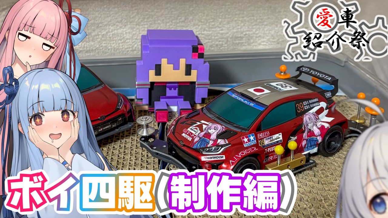 トヨタ、GRヤリスRCで四輪車載、兼ボイロ車載を投稿します。<br>Twitter⇒<a href="https://twitter.com/kohigashi_1f9" target="_blank" rel="noopener nofollow">https://twitter.com/kohigashi_1f9</a><br><br>湊さん主催の愛車紹介祭の参加動画です(告知:<a href="https://www.nicovideo.jp/watch/sm44389289" class="watch">sm44389289</a>)<br>四輪部門と言いたいところですが、弐等兵さん(<a href="https://www.nicovideo.jp/user/2218694" target="_blank" rel="noopener">user/2218694</a>)主催のボイ四駆(ボイスロイド好きによるミニ四駆)がありましたので、<br>『その他部門』としてミニ四駆の制作機をお届けします。<br>加えまして車載要素として、ボイ四駆前日の3/8(土)の模様をお送りします。<br><br>ボイ四駆の他参加者の方の動画<br>◯だわ(終わった人)さん⇒<a href="https://www.nicovideo.jp/watch/sm44742923" class="watch">sm44742923</a>、<a href="https://www.nicovideo.jp/watch/sm44749833" class="watch">sm44749833</a><br>◯戌田ハチさん⇒<a href="https://www.nicovideo.jp/watch/sm44770996" class="watch">sm44770996</a><br><br><br>愛車紹介祭でGRヤリス車載主が増えました。投稿祭参加のきっかけなので紹介。<br>◯かずわんさん⇒<a href="https://www.nicovideo.jp/watch/sm44719030" class="watch">sm44719030</a><br>◯バソキャンさん⇒<a href="https://www.nicovideo.jp/watch/sm44733046" class="watch">sm44733046</a><br><br>☆オープニング曲: WOW WOW WOW 〜こんな時代を精一杯生きるから〜(K Jungle with n (a.k.a.琴葉なおちゅー直樹))⇒<a href="https://www.nicovideo.jp/watch/sm42734482" class="watch">sm42734482</a><br>KOTONOPOP TIME 01 — コトノプリズム⇒<a href="https://www.nicovideo.jp/watch/sm37234745" class="watch">sm37234745</a><br><br>☆お借りしたBGM:コミック・ロック (こばっと様)、とある晴れの日に (〃)、おかしな様子 (〃)、気持ちの良い朝に(〃)、そよ風と揺れる木漏れ日(〃)、スマイルでね(〃)、キュートなマジック!(〃)、休憩中の雑談タイム(〃)<br><br>☆使用したソフト・立ち絵:動画最後またはコンテンツツリーを参照願います。<br><br>☆使用車両:トヨタ・GRヤリスRCグレード(6MT、型式4BA-GXPA16-AGFVZ)<br>☆車載:SONY・アクションカムHDR-AS200V + audio-technica AT9901<br>☆写真:CANON・EOS 90D