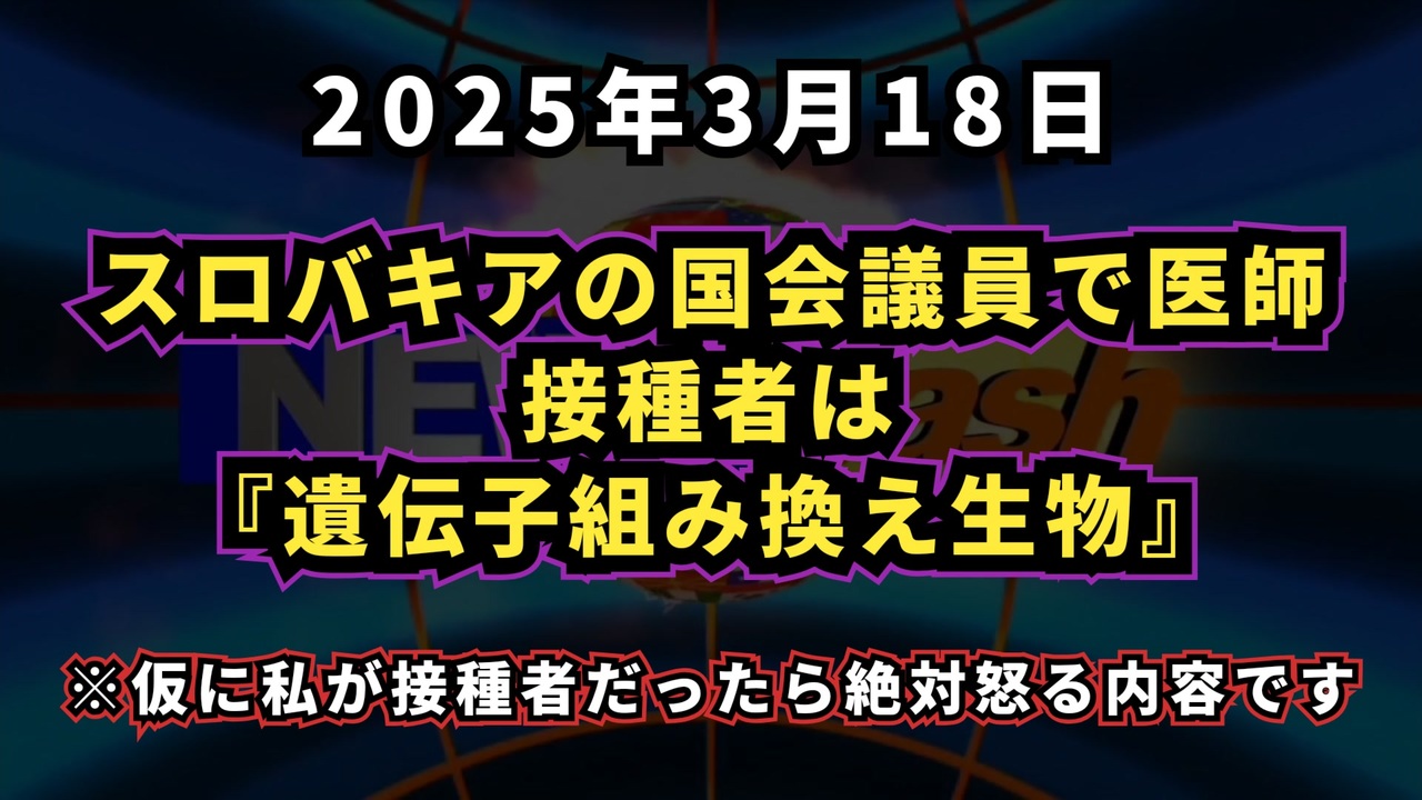 ◆「スロバキアの医師、ワクチン接種者をGMOと公式認定:DNA汚染の衝撃的調査結果」<br><br>スロバキアの医師であり国会議員のピーター・コトラル博士が、COVID-19ワクチンのDNA汚染に関する衝撃的な調査結果を発表。<br><br>ファイザーとモデルナの34バッチを分析したところ、ワクチンに高レベルのDNAが含まれていることが判明し、mRNAワクチンと呼ぶことすらできないと指摘しました。<br><br>さらに、このDNAが人間の核DNAに統合される可能性を示唆し、ワクチン接種者が「遺伝子組み換え生物(GMO)」と認定されると警告。<br><br>この結果は、アメリカのロバート・F・ケネディ・ジュニア保健福祉長官らにも報告されました。<br><br>果たしてこの調査結果は、世界のワクチン政策に影響を与えるのか<br><a href="https://x.com/hudikaha/status/1900420337243914322?t=jcTQMtbylpP78aTSOAwAQQ&s=19" target="_blank" rel="noopener nofollow">https://x.com/hudikaha/status/1900420337243914322?t=jcTQMtbylpP78aTSOAwAQQ&s=19</a><br><br><br>◆ Grokによる詳細<br><a href="https://x.com/i/grok/share/0LhN9nS7UOeRA5F42GmlcUOqO" target="_blank" rel="noopener nofollow">https://x.com/i/grok/share/0LhN9nS7UOeRA5F42GmlcUOqO</a><br><br><br>◆ 今回の台本<br><a href="https://keiichiro8140.hatenablog.com/entry/2025/03/18/111028?_gl=1*dtf06i*_gcl_au*MTE0MDMyNDMzOC4xNzQyMDk5MDI2" target="_blank" rel="noopener nofollow">https://keiichiro8140.hatenablog.com/entry/2025/03/18/111028?_gl=1*dtf06i*_gcl_au*MTE0MDMyNDMzOC4xNzQyMDk5MDI2</a><br><br><br>ピーター・コトラル<br><br>DNA汚染<br><br>ワクチン安全性<br><br>遺伝子組み換え生物<br><br>mRNAワクチン<br><br>新型コロナウイルス<br><br>ロバート・ケネディ・ジュニア<br><br>パム・ボンディ<br><br>カッシュ・パテル<br><br>スロバキア<br><br>健康リスク<br><br />著作権、肖像権に配慮して作成しております。<br><br>◆気になったニュースの台本!?<br>メモ代わりに作った台本をそのままあげてます<br><a href="https://keiichiro8140.hatenablog.com/." target="_blank" rel="noopener nofollow">https://keiichiro8140.hatenablog.com/.</a><br><br><br>ここからはシリーズ紹介<br><br><br>◆ ワクチン解毒・デトックス<br><a href="https://x.gd/fZweg" target="_blank" rel="noopener nofollow">https://x.gd/fZweg</a><br><br>◆ウイリアム・マキス博士のがん治療(イベルメクチン・フェンベンダゾール等)<br><a href="https://x.gd/AtFYS" target="_blank" rel="noopener nofollow">https://x.gd/AtFYS</a><br><br>◆予防接種健康被害救済制度<br><a href="https://x.gd/0xK9x" target="_blank" rel="noopener nofollow">https://x.gd/0xK9x</a><br><br>◆気になったニュース #1501~<br><br>◆ 【ショートver】気になったニュース<br><a href="https://x.gd/7MxXC" target="_blank" rel="noopener nofollow">https://x.gd/7MxXC</a><br><br>◆ 気になったニュース #1001~<br><a href="https://x.gd/Lp8gv" target="_blank" rel="noopener nofollow">https://x.gd/Lp8gv</a><br><br>◆ 気になったニュース #501~<br><a href="https://x.gd/EmbS4" target="_blank" rel="noopener nofollow">https://x.gd/EmbS4</a><br><br>◆ 気になったニュース #1~#500<br><a href="https://x.gd/uPhNb" target="_blank" rel="noopener nofollow">https://x.gd/uPhNb</a><br><br>◆ X(旧Twitter)・テレグラムで気になった情報<br><a href="https://x.gd/YG6FT" target="_blank" rel="noopener nofollow">https://x.gd/YG6FT</a><br><br>◆ 日比谷5万人パレードデ⚪生放送アーカイブ動画<br><a href="https://x.gd/3CHJv" target="_blank" rel="noopener nofollow">https://x.gd/3CHJv</a><br><br>◆日比谷5万人パレード⚪モのマイリスト作ってみました<br><a href="https://nico.ms/mylist/76828848?ref=sp_other" target="_blank" rel="noopener nofollow">https://nico.ms/mylist/76828848?ref=sp_other</a><br><br>◆3.30 令和の百姓⚪⚪<br><a href="https://www.nicovideo.jp/series/511791?ref=garage_share_other" target="_blank" rel="noopener nofollow">https://www.nicovideo.jp/series/511791?ref=garage_share_other</a><br><br>◆ 及川幸久さんの【XNEWS】シリーズ<br><a href="https://x.gd/3k78K" target="_blank" rel="noopener nofollow">https://x.gd/3k78K</a><br><br>◆これまでの動画<a href="https://x.gd/sPXoJ" target="_blank" rel="noopener nofollow">https://x.gd/sPXoJ</a><br><br>◆もしも(BAN)の時のためのマイリンク集<a href="https://lit.link/K-16_News44" target="_blank" rel="noopener nofollow">https://lit.link/K-16_News44</a><br><br>