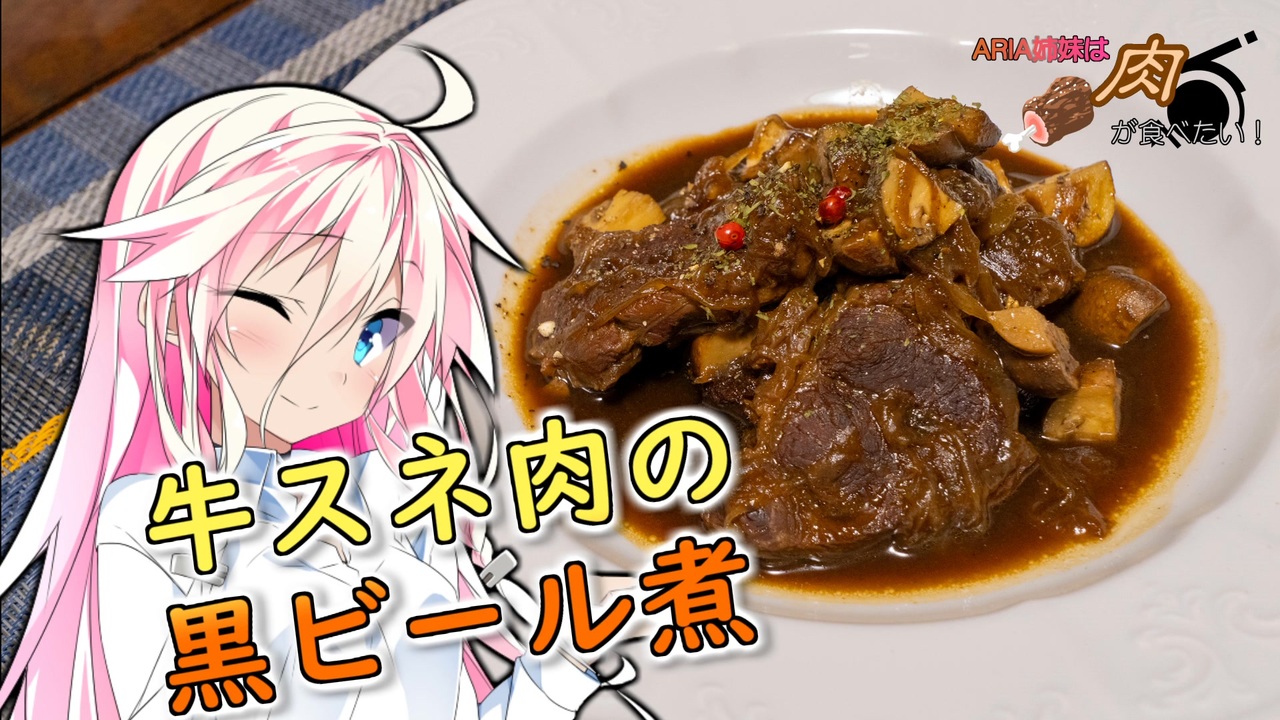キャンプ的な料理を作りたいけどキャンプに行けない人が、それっぽい料理を作ってみました。<br>こうして使ってみるとビールって色んな味や香りの成分が含まれてるんだな、と・・・<br><br>[主材料 3人分]<br> ・牛すね肉 400g<br> ・玉ねぎ 300g<br> ・マッシュルーム 1パック<br> ・にんにく 2欠片<br> ・黒ビール 1缶(350ml)<br> ・三温糖 大さじ1<br> ・赤ワインビネガー<br> 小さじ1.5<br><br>[調味料等]<br> ・オリーブオイル<br> ・塩・コショウ<br> ・薄力粉<br><br> ・ローリエ 1枚<br> ・クローブ 少量<br><br> ・ブラックペッパー<br> ・ピンクペッパー<br> ・パセリ<br><br>【手順】<br>① 玉ねぎを薄めにスライスして電子レンジする<br>② 牛すねを切って塩コショウ、薄力粉を振る<br>③ にんにく2欠片をみじん切り、マッシュルーム4等分<br>④ オリーブオイルを引いて肉の表面を焼いて一度引き上げる<br>⑤ 玉ねぎを炒め、色がついてきたら刻みにんにくを入れる<br>⑥ 肉をフライパンに戻す<br>⑦ 黒ビール・コンソメ顆粒小さじ2・三温糖大さじ1・ローリエ・クローブ少々を入れる。<br>⑧ 沸いてきたら弱火に落として、蓋をして煮込む<br>⑨ 1時間後 マッシュルーム・ワインビネガー大さじ1を入れて蓋をして煮込む。<br>⑩ 1時間15分後、バター10gを入れる。<br> 水分量を見て、蓋をあけて半分以下になるように煮込む。<br>⑪ 盛り付けて黒コショウとパセリをふりかけ、ピンクペッパーを飾って完成。