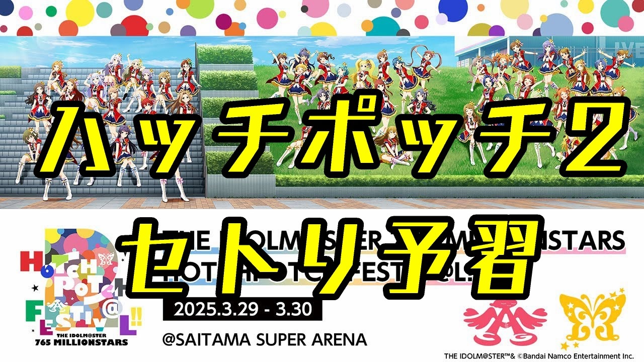 (4/1追記)<br>ライブお疲れ様でした! ドンピシャで当たったり大外れしたりと色々ありましたが、この動画がハッチポッチ2をより楽しむきっかけになった方も多いようで制作者冥利に尽きます! 次回は765AS単独ライブ前にお会いしましょう!<br><br><br><br><br><br>さいたまスーパーアリーナで3/29-30に開催される、<strong>「THE IDOLM@STER 765 MILLIONSTARS HOTCHPOTCH FESTIV@L!! 2」(ハッチポッチ2)</strong>が、いよいよ今月末に近づいてきました!<br><br>7年半ぶりの765ミリオンの単独フルライブで、当時とは曲の数も傾向も大きく変わりました。前回と同様、ハッチポッチ2も何が出てくるか予想もつかないライブとなっております。<br>ライブに参加・視聴する方がより楽しめるような一助になるのはもちろん、普段は触れることもない楽曲との出会いにもなればいいなと思い制作しました。例によって曲ごとにコメント付きです。<br>なお、フロンティアワークス曲は一応やらない前提で考えています。<br><br>ハッチポッチ2は現在配信チケットを販売中です! 現地に行けない方も、普段765ミリオンにあまり触れない方も、この機会にぜひご覧になってください!<br><a href="https://idolmaster-official.jp/live_event/hpf2/streaming/" target="_blank" rel="noopener nofollow">https://idolmaster-official.jp/live_event/hpf2/streaming/</a><br><br>YouTube版はこちらです。(画質などは同じです)<br><a href="https://www.youtube.com/watch?v=DoEKwQ4cH5M" target="_blank" rel="noopener nofollow">https://www.youtube.com/watch?v=DoEKwQ4cH5M</a><br><br>【訂正】<br>58:06「コール環境下では初」を「演者のライブではコール環境下で初」に訂正します。うっかりの脱落ミスでした。