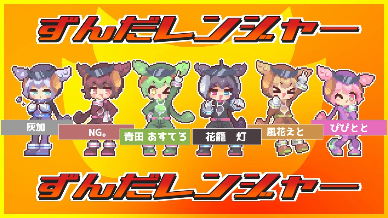 自由奔放な5人と1匹で<br>なみぐるさん 『ずんだレンジャー』を6人で歌わせていただきました。<br> <br>Vocal <br>青田 あすてろ<br>@Asteroid2Blue_4<br> <br>NG。<br>@Ufufu_utau<br> <br>風花えと<br>@atoV_nico<br> <br>ぴぴとと<br>@pipi_t0t0<br> <br>灰加<br>@haika321o<br> <br>花籠 灯<br>@tourou1214<br> <br>mix <br>御二九<br>@29mixer<br><br> <br> ——————————————<br> ◆Credit<br>◆Music&Lyrics&Movie<br>なみぐる様<br><a href="https://x.com/namigroove" target="_blank" rel="noopener nofollow">https://x.com/namigroove</a><br><br>◆Guitar<br>もっちりしたパン様<br><a href="https://x.com/bread_mocchiri" target="_blank" rel="noopener nofollow">https://x.com/bread_mocchiri</a><br><br>◆Key<br>駄菓子O型様<br><a href="https://x.com/ogatadagashi" target="_blank" rel="noopener nofollow">https://x.com/ogatadagashi</a><br><br>◆Bass<br>ゆにまる様<br><a href="https://x.com/unimal_room" target="_blank" rel="noopener nofollow">https://x.com/unimal_room</a><br><br>◆Illusts<br>サカダケイ様<br><a href="https://x.com/sakadakei" target="_blank" rel="noopener nofollow">https://x.com/sakadakei</a><br><br>◆Illusts・Pixel Arts<br>nekomo🐾様<br><a href="https://x.com/yumenkmc" target="_blank" rel="noopener nofollow">https://x.com/yumenkmc</a><br><br>◆Logo・ズ!(Modeling)<br>すずめのめ様<br><a href="https://x.com/crycry_suzume" target="_blank" rel="noopener nofollow">https://x.com/crycry_suzume</a><br><br>◆テレビ撮影<br>ドラキーちゃん様<br><a href="https://x.com/Doraki_chang" target="_blank" rel="noopener nofollow">https://x.com/Doraki_chang</a><br><br>◆SpecialThanks<br>宮城県白石市<br>