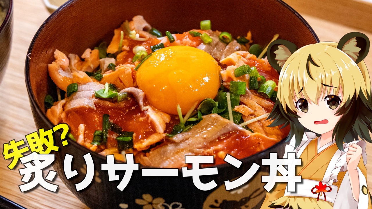 炙りサーモン丼を作りましょう!<br><br>回転寿司など炙りサーモンを食べれるところは結構ありますが、<br>もっとたっぷり食べたい!<br>そんな風に思ったことはありませんか?<br><br>外で食べるところが少ないなら、<br>サーモンの柵を買ってお家で作っちゃいましょう!<br><br>動画ではバーナーを使っていますが、<br>フライパンで両面をさっと焼けば、作れますよ^^<br><br>■材料<br>・サーモン 0.5〜1柵<br>・かいわれ お好みで<br>・刻みのり お好みで<br>・小ネギ お好みで<br>・卵黄 1個<br>・醤油 大さじ1<br>・ごま油 大さじ1<br>・わさび 小さじ1<br><br><br>■所要時間<br>調理時間:調理時間は10分<br>(+塩締め30以上)<br><br><br>ーーーーーーーーーーーーーーーー<br>音声:AI VOICE2紲星あかり<br>立ち絵:星華彩二魔さん<br>音源:DOVA-SYNDROME<br>イラスト:いらすとや<br>機材:Canon EOS R10<br>編集ソフト:Final Cut Pro<br>ーーーーーーーーーーーーーーーー<br><br>youtube:<a href="https://youtu.be/96ndL9D5VBk" target="_blank" rel="noopener nofollow">https://youtu.be/96ndL9D5VBk</a><br>X(旧:twitter):@lycaon_kitchen<br><br>りおんの和風喫茶:<a href="https://www.nicovideo.jp/series/77190" target="_blank" rel="noopener">series/77190</a><br>おつかれごはん:<a href="https://www.nicovideo.jp/series/155690" target="_blank" rel="noopener">series/155690</a><br>手作り和菓子でちょっとひとやすみしませんか?:<a href="https://www.nicovideo.jp/series/155691" target="_blank" rel="noopener">series/155691</a>