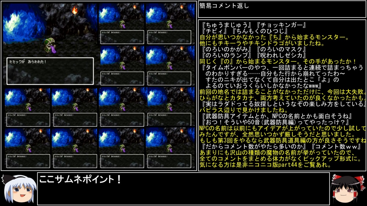 DQⅢの2周目、SFCDQⅢ編part7です。<br>みんな大好きな分割動画。まずは手始めに13分割ではーじまーるよー!<br><br>前→<a href="https://www.nicovideo.jp/watch/sm44759288" class="watch">sm44759288</a><br>次→<a href="https://www.nicovideo.jp/watch/sm44815002" class="watch">sm44815002</a><br><br>YouTube版→<a href="https://youtu.be/UitpbRq95Uo" target="_blank" rel="noopener nofollow">https://youtu.be/UitpbRq95Uo</a><br><br>縛りルール(詳細はpart1参照)<br>①一度使った武器・防具・装飾品・道具・呪文・特技は<br> 次作品以降使用禁止。(売却も解禁扱い)<br><br> 一度使った職業(3,6,7)・仲間モンスター(5,6)・スカウトモンスター(8)は<br> 戦士(Ⅲ)、戦士(Ⅵ)のようにナンバリングで分類し次作品以降使用禁止。<br> また複数体加入できる仲間モンスターは一体まで。<br><br>②裏技、バグ技、全滅、逃走、おどかす禁止。<br> またダンジョン攻略とボス戦における状況再現禁止。<br><br>③ダンジョンとボス攻略は、全キャラのレベルを突入時、<br> 1周目は目標レベル+5。2周目は+10。3周目は+15まで。<br> ラスボスの目標レベルは45。裏ボスは50とする。<br>(目標レベルは各公式ガイドブックを参照)<br><br>④1周目はEDまで。2周目は裏ボス撃破まで。<br> 3周目は全てのボスを規定回数、規定ターン以内に倒す。<br>(回避可能なボスも倒し、闇ゾーマは3周全てで倒す)<br><br><br><span style="color: #262626;">※一部機種は互換機を使用してのプレイとなりますが、倍速機能やクイックセーブ・ロード、チートなどは一切使用しません。</span><br><br>※ネタバレ注意です<br><br>この動画で利用している株式会社スクウェア・エニックスを代表とする共同著作者が権利を所有する著作物及びスギヤマ工房有限会社が権利を所有する楽曲の転載・配布は禁止いたします。<br>(C) ARMOR PROJECT/BIRD STUDIO/SQUARE ENIX All Rights Reserved.<br>(C) SUGIYAMA KOBO (P) SUGIYAMA KOBO<br><br>AquesTalk2ライセンスID:AQTK2WINUSR23122185<br /><br><br>❤いいねを押していただけるとモチベーションと投稿速度が上がるので宜しくお願い致します!<br><br>作者ツイッター→ <a href="https://twitter.com/nig0117" target="_blank" rel="noopener nofollow">https://twitter.com/nig0117</a><br>PIXIV FANBOX→ <a href="https://sutanokeiji.fanbox.cc/" target="_blank" rel="noopener nofollow">https://sutanokeiji.fanbox.cc/</a><br><br>( 以前はWEB小説書いてました→ <a href="https://kakuyomu.jp/works/1177354054884910267" target="_blank" rel="noopener nofollow">https://kakuyomu.jp/works/1177354054884910267</a> )
