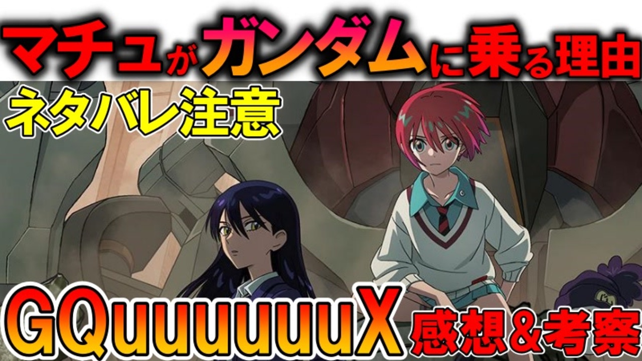 【本当に面白い?】機動戦士ガンダムGQuuuuuuXネタバレ感想&マチュが戦う本当の理由などを解説考察【ジークアクス】<br><br>機動戦士ガンダムジークアクスの感想と主人公であるアマテ・ユズリハことマチュについて解説、考察していきます。<br>今回はほぼ考察です。<br>いいねに次回予告的なものも。<br><br>実際どうなるんでしょうね。<br>私は最初見た時はマチュにまるで共感できず<br>家で一度じっくり考えてから2回目を見に行った辺りで『おや?』となり<br>3回目辺りでほぼ確信に変わった感じではありますが・・・<br>盛り上がって欲しいですが、未来はわかりませんね<br><br>現在連載中の小説を見てくださる方はこちら:<br>異世界アイドル革命!死に戻り悪役令嬢は閃いた『こいつら全員アイドルにしてしまおう!』<br>※初期コンセプトは死に戻ったガルマがシャアを救うにはどうしたら良いのか的な物語を全部女の子でやった感じです。<br>※ここが駄目、もっとこうしたらなどのアドバイスも大歓迎です<br><a href="https://kakuyomu.jp/works/16817330662598051943" target="_blank" rel="noopener nofollow">https://kakuyomu.jp/works/16817330662598051943</a><br><br>質問、などありましたらこちらにも<br><a href="https://twitter.com/@i4S0LHspdgzBTor" target="_blank" rel="noopener nofollow">https://twitter.com/@i4S0LHspdgzBTor</a><br><br>清見元康名義でカクヨム、小説家になろう、たいあっぷなどに投稿しています。<br>もし良ければ応援お願いしますm(_ _)m<br><a href="https://kakuyomu.jp/users/GariD/works" target="_blank" rel="noopener nofollow">https://kakuyomu.jp/users/GariD/works</a><br><br>以前の作品(短編シリアス):<br>転生した厄災の大魔女はやがて聖女と呼ばれる<br><a href="https://ncode.syosetu.com/n0827ha/" target="_blank" rel="noopener nofollow">https://ncode.syosetu.com/n0827ha/</a><br><br>A.I.VOICE:結月ゆかり<br>VOICEVOX:ずんだもん<br><br>使用させていただいたずんだもん:<br>ずんだもん mini Deluxe(立ち絵) ver1.2<br><a href="https://seiga.nicovideo.jp/seiga/im10794509" target="_blank" rel="noopener nofollow">https://seiga.nicovideo.jp/seiga/im10794509</a><br><br>いつも広告、コメントありがとうございます。<br>励みになりますm(_ _)m<br>