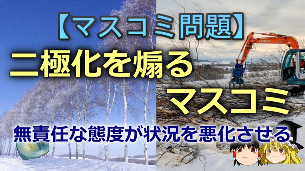 さて、本日はオーバーツーリズム関する問題を題材に、二極化の発生過程について扱っていきます。<br>そろそろどようびが北へ渡る時期です<br>本日のブログ記事<br><a href="https://oogchib.hateblo.jp/entry/2025/03/23/210000" target="_blank" rel="noopener nofollow">https://oogchib.hateblo.jp/entry/2025/03/23/210000</a><br><br>元記事<br>マスコミが作り出す二極化<br><a href="http://ooguchib.blog.fc2.com/blog-entry-532.html" target="_blank" rel="noopener nofollow">http://ooguchib.blog.fc2.com/blog-entry-532.html</a><br><br>関連記事<br>【2002年日韓W杯】国立競技場Public Viewingで何が起きたか <br><a href="https://www.nicovideo.jp/watch/sm36245030" class="watch">sm36245030</a><br>【ゆっくり解説】対馬で起きている韓国人の問題<br><a href="https://www.nicovideo.jp/watch/sm43904870" class="watch">sm43904870</a><br><br>注意<br>・この動画は「マスコミ問題」を扱っています<br><br>・「マスコミ問題」であり右派・左派等の陣営論争は本題ではありません<br><br>・「特定の国との特別な関係」は問題の枝葉です、主問題は業界の体質です<br><br>・自身の常識が相手にとっても常識とは限りません、「他者がそれを見たらど<br>う思うか」という客観性を常に持ちましょう。<br><br>・日常生活で注意する程度には言動に注意を心がけてください<br><br>・リクエストは原則受け付けていません<br><br>・引用ソースへのリンクが同時掲載のブログにあります<br><br>・毎週日曜日更新<br><br>引用ソースと動画のテキストをブログ日韓問題(初心者向け)のほうへ掲載しています。<br><br>日韓問題(初心者向け)<br><a href="https://oogchib.hateblo.jp/" target="_blank" rel="noopener nofollow">https://oogchib.hateblo.jp/</a><br><br>暇つぶしにどうぞ<br><a href="http://ooguchib.blog.fc2.com/" target="_blank" rel="noopener nofollow">http://ooguchib.blog.fc2.com/</a> <br><br>X(旧twitter) @ooguchib<br><a href="https://x.com/ooguchib" target="_blank" rel="noopener nofollow">https://x.com/ooguchib</a><br><br>前 <a href="https://www.nicovideo.jp/watch/sm44767015" class="watch">sm44767015</a> <a href="https://www.nicovideo.jp/mylist/59069876" target="_blank" rel="noopener">mylist/59069876</a> 次 <a href="https://www.nicovideo.jp/watch/sm44822538" class="watch">sm44822538</a><br><br>番外編マイリスト<br><a href="https://www.nicovideo.jp/mylist/62992608" target="_blank" rel="noopener">mylist/62992608</a><br><br>YouTube版<br><a href="https://youtu.be/iVTdlmzTZzU" target="_blank" rel="noopener nofollow">https://youtu.be/iVTdlmzTZzU</a>