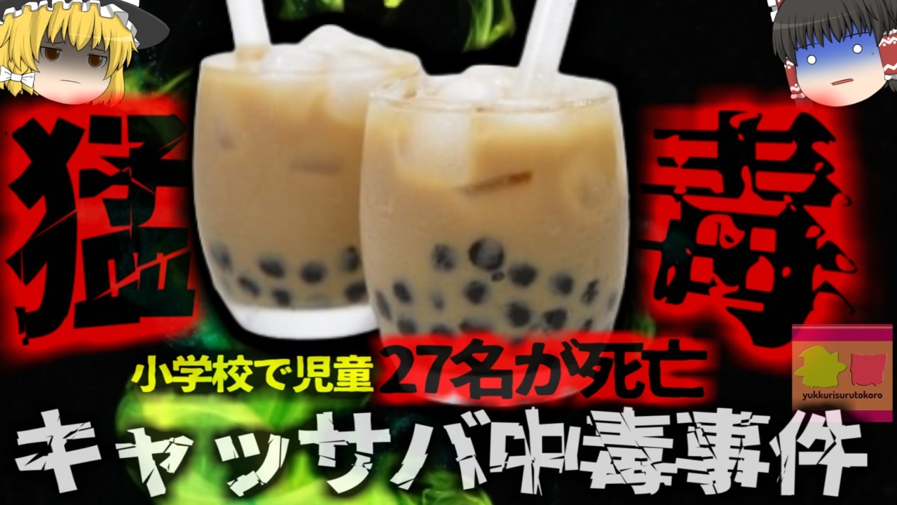 <a href="#" class="seekTime" data-seekTime="00:07" onclick="seekNicoPlayer('#00:07'); return false;">#00:07</a> 「タピオカの原料」<br><a href="#" class="seekTime" data-seekTime="00:28" onclick="seekNicoPlayer('#00:28'); return false;">#00:28</a> タピオカブーム<br><a href="#" class="seekTime" data-seekTime="1:04" onclick="seekNicoPlayer('#1:04'); return false;">#1:04</a> 実は有毒植物<br><a href="#" class="seekTime" data-seekTime="1:21" onclick="seekNicoPlayer('#1:21'); return false;">#1:21</a> フィリピンの小学校で集団食中毒事件発生<br><a href="#" class="seekTime" data-seekTime="2:16" onclick="seekNicoPlayer('#2:16'); return false;">#2:16</a> 直後に発症<br><a href="#" class="seekTime" data-seekTime="3:26" onclick="seekNicoPlayer('#3:26'); return false;">#3:26</a> おやつが原因?<br><a href="#" class="seekTime" data-seekTime="4:14" onclick="seekNicoPlayer('#4:14'); return false;">#4:14</a> シアン化化合物<br><a href="#" class="seekTime" data-seekTime="4:56" onclick="seekNicoPlayer('#4:56'); return false;">#4:56</a> 体内で分解されると…<br><a href="#" class="seekTime" data-seekTime="6:33" onclick="seekNicoPlayer('#6:33'); return false;">#6:33</a> 使われていたのは毒性が強いほうだった<br><a href="#" class="seekTime" data-seekTime="7:17" onclick="seekNicoPlayer('#7:17'); return false;">#7:17</a> 数分で発症し劇的に進行する特徴<br><a href="#" class="seekTime" data-seekTime="8:40" onclick="seekNicoPlayer('#8:40'); return false;">#8:40</a> フィリピンでのキャッサバの歴史と文化的背景<br><a href="#" class="seekTime" data-seekTime="10:29" onclick="seekNicoPlayer('#10:29'); return false;">#10:29</a> 日本含め各国で工夫して食べられている植物<br><br>引用・出展・参考文献(視聴者提供資料など<br>地方独立行政法人 大阪健康安全基盤研究所<br><a href="https://ishort.ink/7Kxa" target="_blank" rel="noopener nofollow">https://ishort.ink/7Kxa</a><br>野食ハンマープライス タピオカの原料・生キャッサバイモを毒に恐怖しつつ調理して食べてみた<br><a href="https://ishort.ink/GTNP" target="_blank" rel="noopener nofollow">https://ishort.ink/GTNP</a><br>外務省 フィリピン<br><a href="https://ishort.ink/kdse" target="_blank" rel="noopener nofollow">https://ishort.ink/kdse</a><br><br />※この動画は過去の事件を知り、現在でも同じことが発生する危険性を再認識、関与しないように促すための動画であり、視聴者を扇動、動揺を誘うためのコンテンツではありません。<br><br>ご要望にお応えして、メンバーシップの開設を行いました。<br>下記URLからも登録可能ですので、ご興味がある方は是非ご参加ください。<br><a href="https://www.youtube.com/channel/UCcT5a1J7XJW7CLYI2RKl4pw/join" target="_blank" rel="noopener nofollow">https://www.youtube.com/channel/UCcT5a1J7XJW7CLYI2RKl4pw/join</a><br><br><br>Twitter<br>→<a href="https://twitter.com/yukkurisurutoko" target="_blank" rel="noopener nofollow">https://twitter.com/yukkurisurutoko</a><br><br>取り急ぎ、簡易的にですがマイリストを作りました。<br>【ゆっくり解説】事故・事件関係紹介リスト <br><a href="https://www.nicovideo.jp/mylist/71034319" target="_blank" rel="noopener nofollow">https://www.nicovideo.jp/mylist/71034319</a><br>【ゆっくり解説】放射線系事故<br><a href="https://www.nicovideo.jp/mylist/71034368" target="_blank" rel="noopener nofollow">https://www.nicovideo.jp/mylist/71034368</a><br>【ゆっくり解説】鉄道系事故・事件関連<br><a href="https://www.nicovideo.jp/mylist/71034379" target="_blank" rel="noopener nofollow">https://www.nicovideo.jp/mylist/71034379</a>