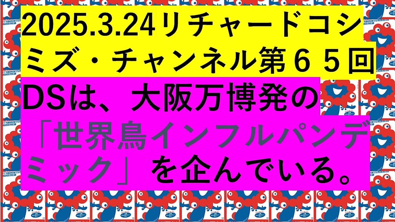 <span style="color: #cc0000;"><strong>◐『「 リチャード・コシミズ・チャンネル 」⦅ 第65回放送 ⦆⦅ 暫定版 ⦆』</strong></span><br><br> <span style="color: #ff0000;"><strong>「『 DEEP STATE 』は、『 大阪万博発 』の『 世界鳥インフルエンザ・パンデミック 』を『 企んでいる 』」</strong></span><br><br> <span style="color: #38761d;"><strong>◐『 リチャード・コシミズ・チャンネル⦅ ニコニコ チャンネル ⦆』</strong></span><br> <span style="color: #0000ff;"><strong><a href="https://ch.nicovideo.jp/richardkoshimizu" target="_blank" rel="noopener nofollow">https://ch.nicovideo.jp/richardkoshimizu</a></strong></span><br><br> <span style="color: #38761d;"><strong>◐『 リチャード・コシミズ「 ニコニコ生放送⦅ LIVE ⦆」』</strong></span><br> <span style="color: #0000ff;"><strong><a href="https://www.nicovideo.jp/user/120930363/live_programs" target="_blank" rel="noopener nofollow">https://www.nicovideo.jp/user/120930363/live_programs</a></strong></span><br><br> <span style="color: #38761d;"><strong>◐『 リチャード・コシミズ「 Rumble 」公式「 動画ギャラリー 」』</strong></span><br> <span style="color: #0000ff;"><strong><a href="https://rumble.com/user/richardkoshimizu" target="_blank" rel="noopener nofollow">https://rumble.com/user/richardkoshimizu</a></strong></span><br> <span style="color: #0000ff;"><strong><a href="https://rumble.com/user/RKVideoGallery" target="_blank" rel="noopener nofollow">https://rumble.com/user/RKVideoGallery</a></strong></span><br><br> <span style="color: #38761d;"><strong>◐『「 リチャード・コシミズ 講演会 」公式「 動画ギャラリー 」』</strong></span><br> <span style="color: #0000ff;"><strong><a href="http://www.t-sskk.com/richardkoshimizu/video-gallery/index.html" target="_blank" rel="noopener nofollow">http://www.t-sskk.com/richardkoshimizu/video-gallery/index.html</a></strong></span><br>