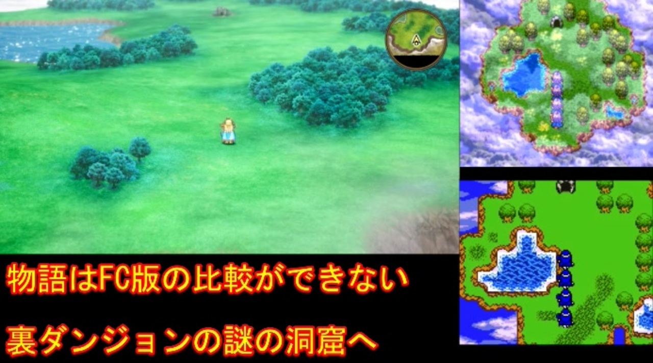 裏ダンジョンを冒険します。<br>動画内では触れていませんが、クリア後の再開がラダトームから……ということは、ルーラなしだと上の世界に戻ることができず、シリーズ解禁縛りでは詰みますね。残念!<br><br>右枠のSFC版の映像は前シリーズのものですが、ノーカットだとキングヒドラのせいで動画の大半が戦闘シーンになってしまうので一部カットしました。ノーセーブ1神竜で30分、懐かしいなあ。<br><br>前→<a href="https://www.nicovideo.jp/watch/sm44804215" class="watch">sm44804215</a><br>次→<a href="https://www.nicovideo.jp/watch/sm44807169" class="watch">sm44807169</a><br>YouTube版→<a href="https://youtu.be/S8dzwPyUCDI" target="_blank" rel="noopener nofollow">https://youtu.be/S8dzwPyUCDI</a><br>現在投稿中のドラクエの縛りプレイ→<a href="https://www.nicovideo.jp/watch/sm43708158" class="watch">sm43708158</a><br>現在投稿中のクロノ・トリガーの縛りプレイ→<a href="https://www.nicovideo.jp/watch/sm43752866" class="watch">sm43752866</a><br><br>※ネタバレ注意です<br><br>この動画で利用している株式会社スクウェア・エニックスを代表とする共同著作者が権利を所有する著作物及びスギヤマ工房有限会社が権利を所有する楽曲の転載・配布は禁止いたします。<br>© ARMOR PROJECT/BIRD STUDIO/SPIKE CHUNSOFT/SQUARE ENIX<br>© SUGIYAMA KOBO<br>℗ SUGIYAMA KOBO<br><br>AquesTalk2ライセンスID:AQTK2WINUSR23122185<br /><br><br>❤いいねを押していただけるとモチベーションと投稿速度が上がるので宜しくお願い致します!<br><br>作者ツイッター→ <a href="https://twitter.com/nig0117" target="_blank" rel="noopener nofollow">https://twitter.com/nig0117</a><br>PIXIV FANBOX→ <a href="https://sutanokeiji.fanbox.cc/" target="_blank" rel="noopener nofollow">https://sutanokeiji.fanbox.cc/</a><br><br>( 以前はWEB小説書いてました→ <a href="https://kakuyomu.jp/works/1177354054884910267" target="_blank" rel="noopener nofollow">https://kakuyomu.jp/works/1177354054884910267</a> )
