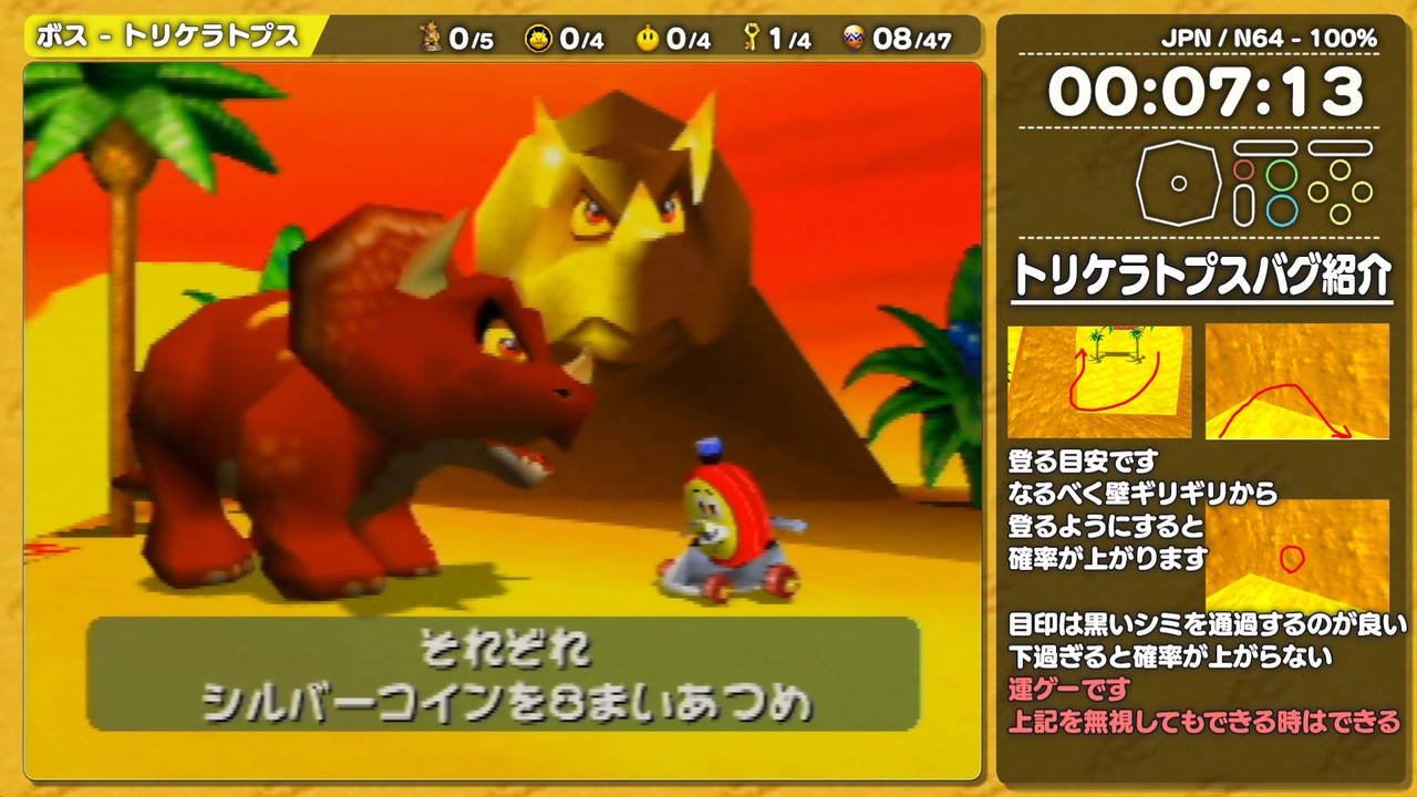 Part 2:<a href="https://www.nicovideo.jp/watch/sm44842420" class="watch">sm44842420</a><br><br>計測区間<br>開始:ファイルを選択した瞬間<br>終了:ウィズピッグ2戦目を1位でゴールした瞬間<br><br>ルール<br>・47個のゴールドバルーンの取得<br>・4つの鍵の入手<br>・4つのTTアミュレットの入手<br>・4つのウィズピッグアミュレットの入手<br>・5つのトロフィーの入手<br>・<br><br>一括版:<br><br>今まで投稿した解説動画のPart1<br>ドンキーコング64 NoLevelsEarly 2:00:58 Part1:<a href="https://www.nicovideo.jp/watch/sm39479110" class="watch">sm39479110</a><br>ドンキーコング64 日本版初心者向けRTA 0:57:39 Part 1:<a href="https://www.nicovideo.jp/watch/sm40294604" class="watch">sm40294604</a><br>バンジョーとカズーイの大冒険2 100% 4時間29分19秒 Part1:<a href="https://www.nicovideo.jp/watch/sm43011763" class="watch">sm43011763</a><br>ディディーコングレーシング 100% Part1:<a href="https://www.nicovideo.jp/watch/sm44809502" class="watch">sm44809502</a><br>ディディーコングレーシング All Trophy Races 25分54秒 Part1:<a href="https://www.nicovideo.jp/watch/sm44744008" class="watch">sm44744008</a><br><br>配信先:<a href="https://www.twitch.tv/toyomana" target="_blank" rel="noopener nofollow">https://www.twitch.tv/toyomana</a><br>Twitter:<a href="https://twitter.com/toyo_rta" target="_blank" rel="noopener nofollow">https://twitter.com/toyo_rta</a><br>Youtube:<a href="https://www.youtube.com/@ToyoMana64_RTA" target="_blank" rel="noopener nofollow">https://www.youtube.com/@ToyoMana64_RTA</a>