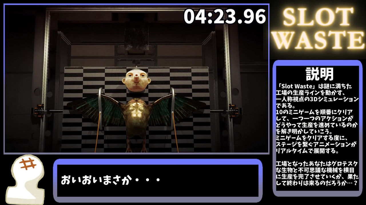 今回はSlot Wasteを遊びました<br>・・・でなんの工場?<br><br>ゲームDLサイト→<a href="https://store.steampowered.com/app/3109370/Slot_Waste/" target="_blank" rel="noopener nofollow">https://store.steampowered.com/app/3109370/Slot_Waste/</a><br><br><span style="color: #000000; font-size: 14px;">単発RTA→</span><span style="color: #006699; font-size: 14px;"><a href="https://www.nicovideo.jp/mylist/66917940" target="_blank" rel="noopener">mylist/66917940</a></span><br><br>生放送コミュ→co4338697<br><br><span style="color: #000000; font-size: 14px;">ΔYoutube→</span><span style="color: #006699; font-size: 14px;"><a href="https://www.youtube.com/channel/UC4jVPBw6dP3mXCGJvRi3Xbw?view_as=subscriber" target="_blank" rel="noopener nofollow">https://www.youtube.com/channel/UC4jVPBw6dP3mXCGJvRi3Xbw?view_as=subscriber</a></span>