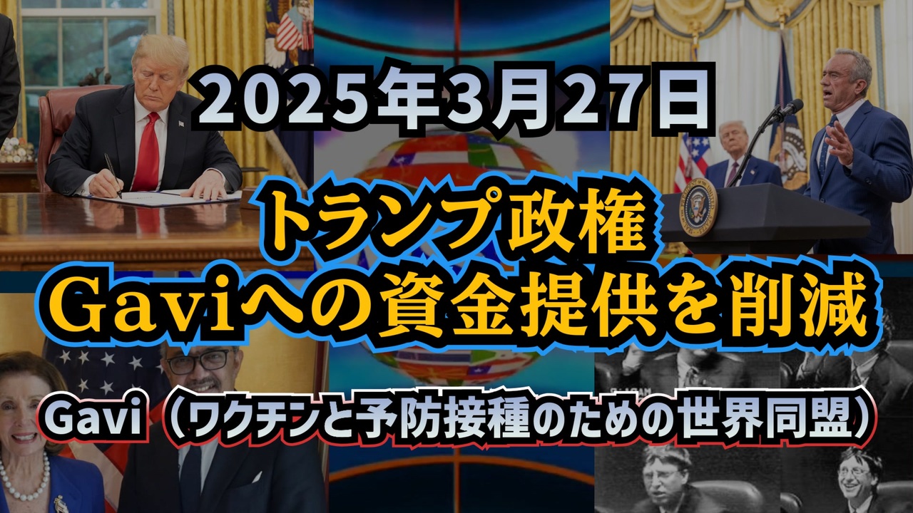 トランプ大統領の政権が、世界の子どもたちにワクチンを提供する「Gavi」への資金提供を削減する方針を固めました。この決定により、ゲイツ財団やWHOは強く反発し、支援撤回が途上国に壊滅的な影響を及ぼすと警鐘を鳴らしています。一方、HHS長官に指名されたRFK Jr.は、Gaviやゲイツ財団の影響力に疑問を呈し、ワクチンの安全性や医療機関の透明性を訴えてきました。果たして、この資金削減の真の狙いは何なのか? ワクチン政策を巡る攻防と、その背後にある思惑を探ります。<br><br><br>◆ 今回の台本<br><a href="https://keiichiro8140.hatenablog.com/entry/20250327002" target="_blank" rel="noopener nofollow">https://keiichiro8140.hatenablog.com/entry/20250327002</a><br><br><br>トランプ大統領<br>ビル・ゲイツ<br>ビル&メリンダ・ゲイツ財団<br>トランプ政権<br>ワクチン政策<br>Gavi<br>支援削減<br>資金提供<br>WHO<br>ロバート・ケネディ・ジュニア<br>ワクチン<br><br><br />著作権、肖像権に配慮して作成しております。<br><br>◆気になったニュースの台本!?<br>メモ代わりに作った台本をそのままあげてます<br><a href="https://keiichiro8140.hatenablog.com/." target="_blank" rel="noopener nofollow">https://keiichiro8140.hatenablog.com/.</a><br><br><br>ここからはシリーズ紹介<br><br><br>◆ ワクチン解毒・デトックス<br><a href="https://x.gd/fZweg" target="_blank" rel="noopener nofollow">https://x.gd/fZweg</a><br><br>◆ウイリアム・マキス博士のがん治療(イベルメクチン・フェンベンダゾール等)<br><a href="https://x.gd/AtFYS" target="_blank" rel="noopener nofollow">https://x.gd/AtFYS</a><br><br>◆予防接種健康被害救済制度<br><a href="https://x.gd/0xK9x" target="_blank" rel="noopener nofollow">https://x.gd/0xK9x</a><br><br>◆気になったニュース #1501~<br><br>◆ 【ショートver】気になったニュース<br><a href="https://x.gd/7MxXC" target="_blank" rel="noopener nofollow">https://x.gd/7MxXC</a><br><br>◆ 気になったニュース #1001~<br><a href="https://x.gd/Lp8gv" target="_blank" rel="noopener nofollow">https://x.gd/Lp8gv</a><br><br>◆ 気になったニュース #501~<br><a href="https://x.gd/EmbS4" target="_blank" rel="noopener nofollow">https://x.gd/EmbS4</a><br><br>◆ 気になったニュース #1~#500<br><a href="https://x.gd/uPhNb" target="_blank" rel="noopener nofollow">https://x.gd/uPhNb</a><br><br>◆ X(旧Twitter)・テレグラムで気になった情報<br><a href="https://x.gd/YG6FT" target="_blank" rel="noopener nofollow">https://x.gd/YG6FT</a><br><br>◆ 日比谷5万人パレードデ⚪生放送アーカイブ動画<br><a href="https://x.gd/3CHJv" target="_blank" rel="noopener nofollow">https://x.gd/3CHJv</a><br><br>◆日比谷5万人パレード⚪モのマイリスト作ってみました<br><a href="https://nico.ms/mylist/76828848?ref=sp_other" target="_blank" rel="noopener nofollow">https://nico.ms/mylist/76828848?ref=sp_other</a><br><br>◆3.30 令和の百姓⚪⚪<br><a href="https://www.nicovideo.jp/series/511791?ref=garage_share_other" target="_blank" rel="noopener nofollow">https://www.nicovideo.jp/series/511791?ref=garage_share_other</a><br><br>◆ 及川幸久さんの【XNEWS】シリーズ<br><a href="https://x.gd/3k78K" target="_blank" rel="noopener nofollow">https://x.gd/3k78K</a><br><br>◆これまでの動画<a href="https://x.gd/sPXoJ" target="_blank" rel="noopener nofollow">https://x.gd/sPXoJ</a><br><br>◆もしも(BAN)の時のためのマイリンク集<a href="https://lit.link/K-16_News44" target="_blank" rel="noopener nofollow">https://lit.link/K-16_News44</a><br><br>