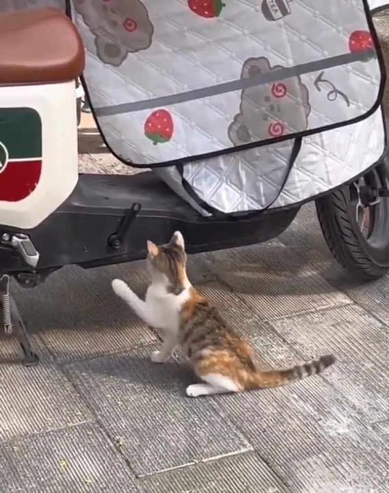 データ詳細 ホモと見るバイクのペダルをパンチするネコ
