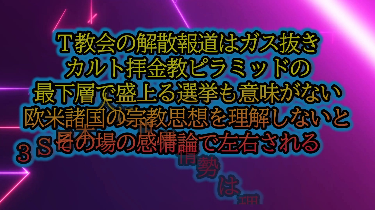 T教会の解散はガス抜き、目くらまし報道でしょう...<br>3Sに洗脳され短絡的な感情で騒ぐ日本人がなぜ世界情勢を理解できないのか<br>彼らの宗教思想を知れば今起きてる事も分かる