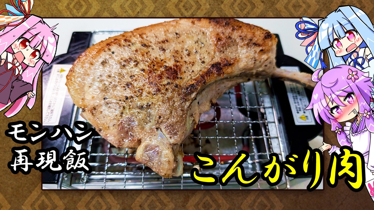 モンスターハンターシリーズに出てくる『こんがり肉』を無理やりキッチンで作ってみました!<br><br>〇モンハン再現料理シリーズはこちらから↓<br><a href="https://garage.nicovideo.jp/niconico-garage/video/series/510470" target="_blank" rel="noopener nofollow">https://garage.nicovideo.jp/niconico-garage/video/series/510470</a><br><br>***<br><br>いいねやフォローありがとうございます!<br>ニコニ広告もありがとうございます、すごく嬉しいです♪<br>タグの追加もありがたいです、助かります!<br><br>前回の動画にギフトをくださった方は、私が見たときはいただいた順で【Fi】様、【なめたけ】様からでした♪<br>桜いいですね、春ですねぇ!いつものメンツはめちゃ可愛いのに、なぜかあかりちゃんだけが、ものすごく驚いている笑<br>素敵なギフトをありがとうございました!<br><br>***<br><br>〇A.I.VOICE 結月ゆかり 琴葉茜 琴葉葵<br><br>〇引用元素材サイト <br>・イラストAC 様<br>・動画 AC 様<br>・DOVA-SYNDROME. 様<br>・ニコニ・コモンズ 様<br>・効果音ラボ 様<br>・YouTuberのための素材屋さん様<br><br>〇使用立ち絵<br>◆結月ゆかり 琴葉茜 琴葉葵<br>・りんどう様<br><a href="https://seiga.nicovideo.jp/seiga/im10157105" target="_blank" rel="noopener nofollow">https://seiga.nicovideo.jp/seiga/im10157105</a><br><a href="https://seiga.nicovideo.jp/seiga/im9049212" target="_blank" rel="noopener nofollow">https://seiga.nicovideo.jp/seiga/im9049212</a><br><br>〇アイコンや合間のイラスト<br>・前田べす様<br>