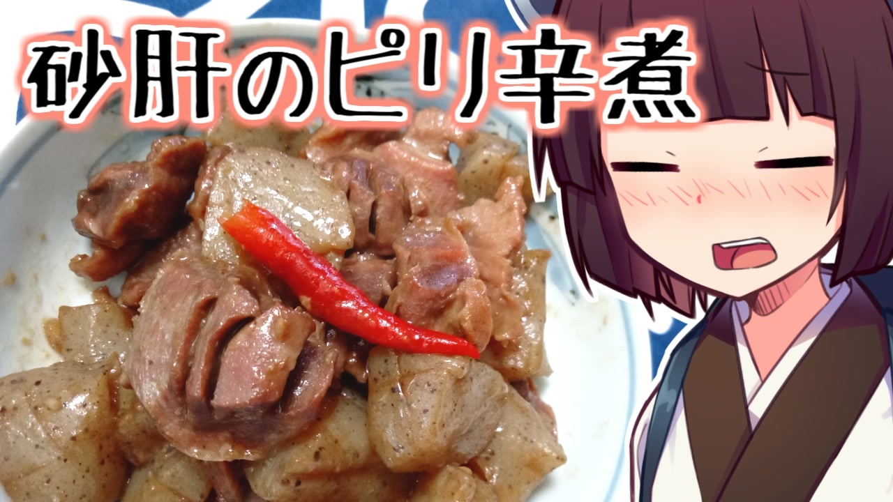 <strong><材料(2人分)></strong><br>砂肝:300g<br>コンニャク:150g<br>ゴマ油:大さじ1+小さじ1<br>酒:大さじ2<br>しょうゆ:大さじ2<br>みりん:大さじ2<br>水:大さじ4<br>にんにく:1欠け<br>鷹の爪:1本<br><br><strong><作り方(簡易版)></strong><br>・砂肝は半分に切り分け、銀皮と取り除いて切り込みを入れる。<br>・コンニャクは表面に切り込みを入れてから砂肝と同じ大きさに千切る。<br>・ニンニクはみじん切り、鷹の爪は種を抜いておく。<br>・鍋に、ゴマ油・ニンニク・鷹の爪を入れて弱火で熱し、香りがたったら砂肝を入れて中火に上げる。<br>・表面の色が変わったら、コンニャク・水・酒・みりん・しょうゆを入れ、落し蓋をして弱火で20分煮る。<br>・落し蓋を外して中火に上げて煮詰め、火を止めてからゴマ油小さじ1を回し入れる。