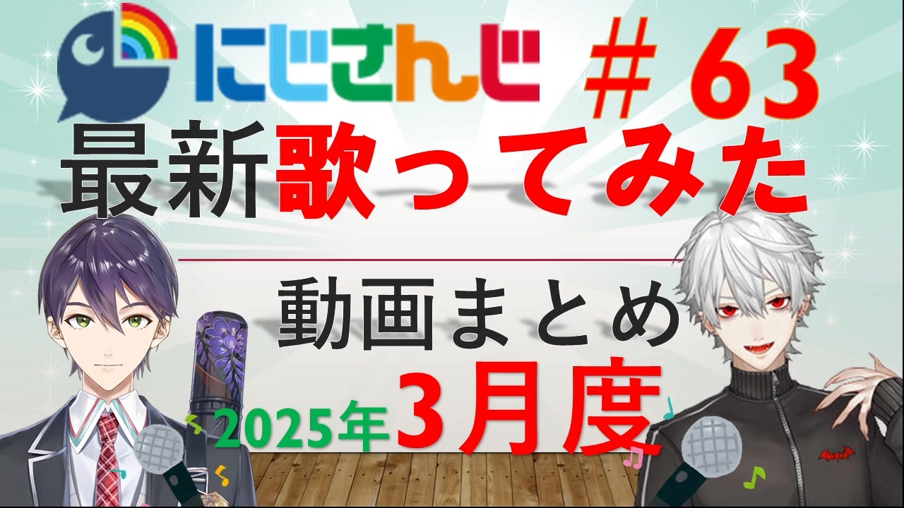 <span style="color: #00ff00;">◆</span>期間:2025年3月1日~3月31日<br><span style="color: #00ff00;">◆</span>対象:にじさんじライバーによる歌ってみた動画<br><span style="font-size: 10px;">(にじさんじのみ対象。JP・元ID・元KR・EN)</span><br><span style="color: #00ff00;">◆</span><span style="color: #262626;">参考サイト:(</span><span style="color: #262626;"><strong>↓元動画はこのページからご参照ください↓</strong></span><span style="color: #262626;">)</span><br>VMusic Ch. 様<br><a href="https://music.vtuber-ch.com/?gname=にじさんじALL" target="_blank" rel="noopener nofollow">https://music.vtuber-ch.com/?gname=にじさんじALL</a><br>にじさんじ非公式Wiki 様<br><a href="https://wikiwiki.jp/nijisanji/歌唱まとめ" target="_blank" rel="noopener nofollow">https://wikiwiki.jp/nijisanji/歌唱まとめ</a><br><br>前回(2月)の歌みたまとめ:<a href="https://www.nicovideo.jp/watch/sm44725866" class="watch">sm44725866</a><br>年間歌ってみたまとめ:<a href="https://www.nicovideo.jp/watch/sm44544012" class="watch">sm44544012</a><br><br>プレイリストは上記非公式Wiki内のプレイリストをご活用ください。<br>気になる歌動画を見つけたらぜひ、元動画をご覧ください!!<br><br>よく確認はしましたが、抜けがありましたらコメントをお願いいたします。