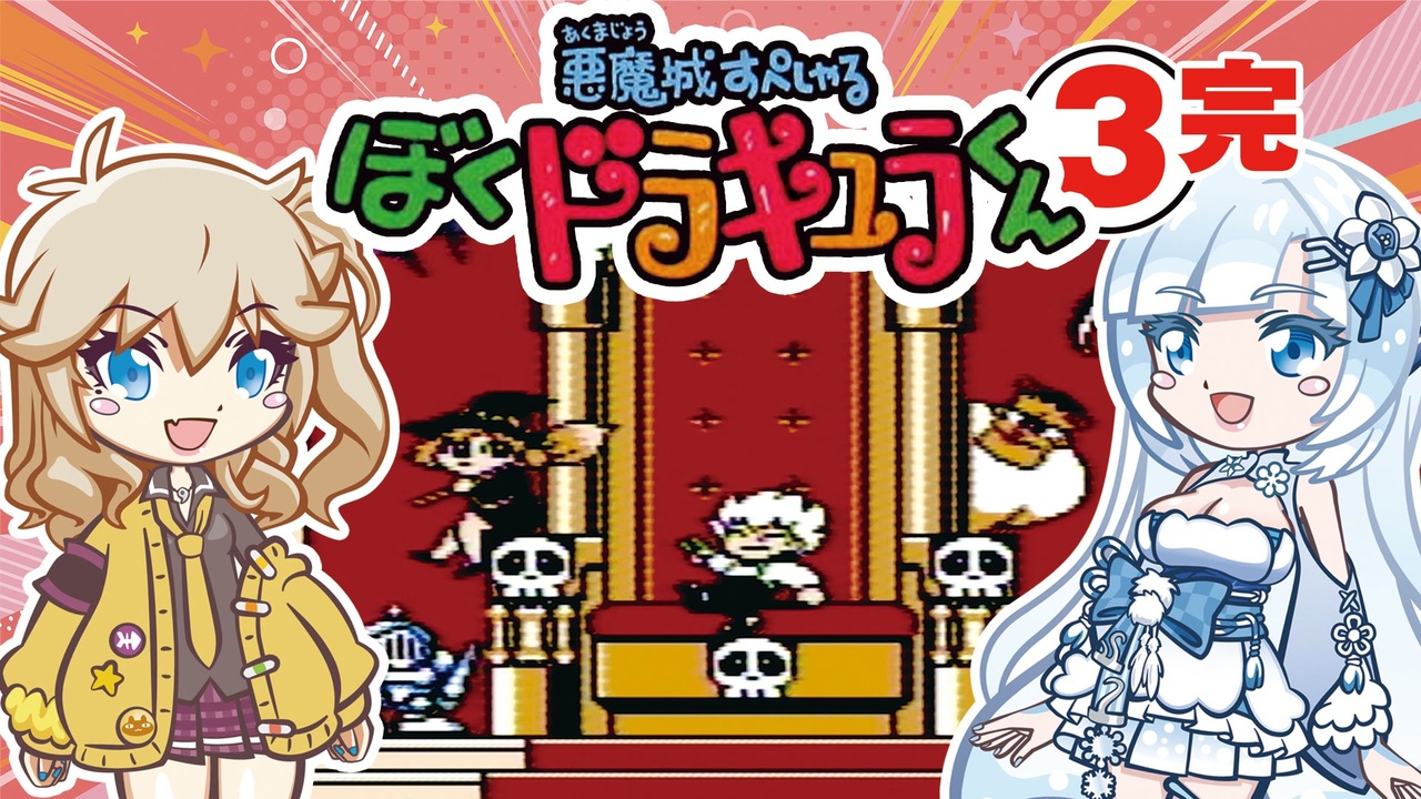 ファミコンソフト「悪魔城すぺしゃる ぼくドラキュラくん」の実況。その3です。<br><br>前回から少し間があいちゃいましたが、ファミコン版ドラキュラくん、これにて完結<br>ステージ7と9だけ異様に難しいですこのゲーム<br><br>※追記 シモンの立ち絵はリヒターと同時期の大昔に描いたものです。<br><br>前:<a href="https://www.nicovideo.jp/watch/sm44742263" class="watch">sm44742263</a> 【FC ぼくドラキュラくん その2】ベルモンドがやってきたぞ!ヤァ!ヤァ!ヤァ!【春日部つむぎゲーム実況 激闘編vol.7】<br>次:<a href="https://www.nicovideo.jp/watch/sm44899099" class="watch">sm44899099</a> 【GB ロボコップ】 カ ス コ ッ プ 【ボイスソフトゲームボーイ実況動画投稿祭2】<br>part1:<a href="https://www.nicovideo.jp/watch/sm44580456" class="watch">sm44580456</a><br><br>VOICEVOX:青山龍星<br>VOICEVOX:剣崎雌雄<br /><br>VOICEVOX:春日部つむぎ<br>VOICEVOX:四国めたん<br>VOICEVOX:white CUL<br>VOICEVOX:冥鳴ひまり<br>VOICEVOX:東北きりたん<br>VOICEVOX:ずんだもん<br><br>他の投稿動画<br>【春日部つむぎゲーム実況】激闘編⇒<a href="https://www.nicovideo.jp/user/16027139/series/503385?ref=user_series" target="_blank" rel="noopener nofollow">https://www.nicovideo.jp/user/16027139/series/503385?ref=user_series</a><br>【春日部つむぎゲーム実況】単発編⇒<a href="https://www.nicovideo.jp/user/16027139/series/438879?ref=user_series" target="_blank" rel="noopener nofollow">https://www.nicovideo.jp/user/16027139/series/438879?ref=user_series</a><br>【春日部つむぎ車載】バイク編⇒<a href="https://www.nicovideo.jp/user/16027139/series/453242?ref=user_series" target="_blank" rel="noopener nofollow">https://www.nicovideo.jp/user/16027139/series/453242?ref=user_series</a><br>【お絵描きメイキング】⇒<a href="https://www.nicovideo.jp/user/16027139/series/310137?ref=user_series" target="_blank" rel="noopener nofollow">https://www.nicovideo.jp/user/16027139/series/310137?ref=user_series</a><br>【ノンセレクション】⇒<a href="https://www.nicovideo.jp/user/16027139/series/471189?ref=user_series" target="_blank" rel="noopener nofollow">https://www.nicovideo.jp/user/16027139/series/471189?ref=user_series</a><br>【忍者龍剣伝2】忍者つむぎ伝⇒<a href="https://www.nicovideo.jp/user/16027139/series/301378?ref=user_series" target="_blank" rel="noopener nofollow">https://www.nicovideo.jp/user/16027139/series/301378?ref=user_series</a><br><br><a target="_blank" href="https://qa.nicovideo.jp/faq/show/19424?site_domain=default" style="font-size: 13px;color: #657586; text-decoration: underline; line-height: 1.4">この動画は投稿者によって修正されました</a>