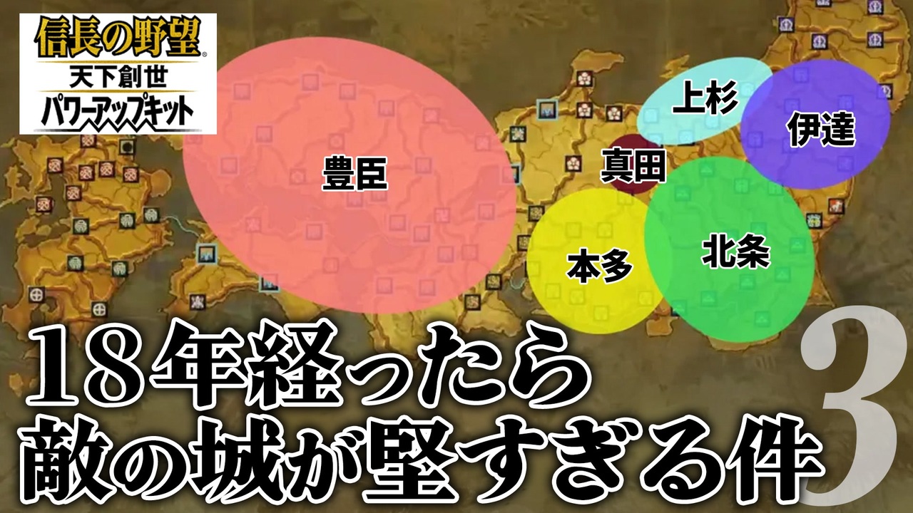 次:パート04➡<a href="https://www.nicovideo.jp/watch/sm44851192" class="watch">sm44851192</a><br>前:パート02➡<a href="https://www.nicovideo.jp/watch/sm44821171" class="watch">sm44821171</a><br>最初:パート01➡<a href="https://www.nicovideo.jp/watch/sm44811105" class="watch">sm44811105</a><br>前章:パート01➡<a href="https://www.nicovideo.jp/watch/sm44589431" class="watch">sm44589431</a><br><br>※茶番劇は撮れ高模索中<br>――――――――――――――――――――――――――――――――――――――<br><『信長の野望・天下創世withパワーアップキット』製品情報> <br>ジャンル :歴史シミュレーションゲーム <br> ©コーエーテクモゲームス All rights reserved.<br>―――――――――――――――――――――――――――<br>開始シナリオ:1590年梅雨 政宗反攻 <br>大名:真田昌幸 <br>難易度:超級 歴史イベント:あり<br>―――――――――――――――――――――――――――<br>BGM(チャンネル用エンディングテーマ他):若林タカツグ<br>▶ X:<a href="https://twitter.com/cocoa2448" target="_blank" rel="noopener nofollow">https://twitter.com/cocoa2448</a><br>▶ youtube:<a href="https://youtube.com/@Takatsugu" target="_blank" rel="noopener nofollow">https://youtube.com/@Takatsugu</a><br>―――――――――――――――――――――――――――<br>ゲームプレイ・動画制作:アシェ<br>サムネ制作及び動画制作補助:レシル<br>―――――――――――――――――――――――――――<br>◇Twitter(アシェ):<a href="https://twitter.com/AcierRoi" target="_blank" rel="noopener nofollow">https://twitter.com/AcierRoi</a><br>◇Twitter(レシル):<a href="http://twitter.com/reciru" target="_blank" rel="noopener nofollow">http://twitter.com/reciru</a><br><br>
