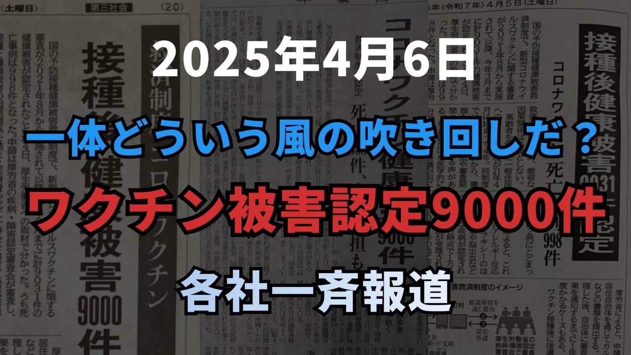 「ワクチン薬害は陰謀論」<br>そう信じさせられてきた私たちに、突きつけられた“現実”。<br>4月5日、各新聞社が一斉に報じたコロナワクチン救済制度の認定件数。そのタイミングは偶然なのか、それとも…。<br>SNSで拡散される市民の声、2か月前から取材をしていた共同通信がなぜ“今”出したのか。<br>そして、この国の報道の自由は本当に守られているのか?<br>報道統制・資本の力・情報の選別――私たちは何を知らされ、何を知らされていないのか。<br>世間に出る「デマ」とされてきた情報の真相に、改めて目を向ける時が来た。<br><br><br>◆ 今回の台本<br><a href="https://keiichiro8140.hatenablog.com/entry/20250406002" target="_blank" rel="noopener nofollow">https://keiichiro8140.hatenablog.com/entry/20250406002</a><br><br><br>ワクチン薬害<br>コロナワクチン<br>予防接種健康被害救済制度<br>メディア統制<br>共同通信<br>被害認定9000件<br>死亡認定998件<br>報道規制<br>ワクチン<br>救済制度<br>ニュース<br><br><br />著作権、肖像権に配慮して作成しております。<br><br>◆気になったニュースの台本!?<br>メモ代わりに作った台本をそのままあげてます<br><a href="https://keiichiro8140.hatenablog.com/." target="_blank" rel="noopener nofollow">https://keiichiro8140.hatenablog.com/.</a><br><br><br>ここからはシリーズ紹介<br><br><br>◆ ワクチン解毒・デトックス<br><a href="https://x.gd/fZweg" target="_blank" rel="noopener nofollow">https://x.gd/fZweg</a><br><br>◆ウイリアム・マキス博士のがん治療(イベルメクチン・フェンベンダゾール等)<br><a href="https://x.gd/AtFYS" target="_blank" rel="noopener nofollow">https://x.gd/AtFYS</a><br><br>◆予防接種健康被害救済制度<br><a href="https://x.gd/0xK9x" target="_blank" rel="noopener nofollow">https://x.gd/0xK9x</a><br><br>◆気になったニュース #1501~<br><br>◆ 【ショートver】気になったニュース<br><a href="https://x.gd/7MxXC" target="_blank" rel="noopener nofollow">https://x.gd/7MxXC</a><br><br>◆ 気になったニュース #1001~<br><a href="https://x.gd/Lp8gv" target="_blank" rel="noopener nofollow">https://x.gd/Lp8gv</a><br><br>◆ 気になったニュース #501~<br><a href="https://x.gd/EmbS4" target="_blank" rel="noopener nofollow">https://x.gd/EmbS4</a><br><br>◆ 気になったニュース #1~#500<br><a href="https://x.gd/uPhNb" target="_blank" rel="noopener nofollow">https://x.gd/uPhNb</a><br><br>◆ X(旧Twitter)・テレグラムで気になった情報<br><a href="https://x.gd/YG6FT" target="_blank" rel="noopener nofollow">https://x.gd/YG6FT</a><br><br>◆ 日比谷5万人パレードデ⚪生放送アーカイブ動画<br><a href="https://x.gd/3CHJv" target="_blank" rel="noopener nofollow">https://x.gd/3CHJv</a><br><br>◆日比谷5万人パレード⚪モのマイリスト作ってみました<br><a href="https://nico.ms/mylist/76828848?ref=sp_other" target="_blank" rel="noopener nofollow">https://nico.ms/mylist/76828848?ref=sp_other</a><br><br>◆3.30 令和の百姓⚪⚪<br><a href="https://www.nicovideo.jp/series/511791?ref=garage_share_other" target="_blank" rel="noopener nofollow">https://www.nicovideo.jp/series/511791?ref=garage_share_other</a><br><br>◆ 及川幸久さんの【XNEWS】シリーズ<br><a href="https://x.gd/3k78K" target="_blank" rel="noopener nofollow">https://x.gd/3k78K</a><br><br>◆これまでの動画<a href="https://x.gd/sPXoJ" target="_blank" rel="noopener nofollow">https://x.gd/sPXoJ</a><br><br>◆もしも(BAN)の時のためのマイリンク集<a href="https://lit.link/K-16_News44" target="_blank" rel="noopener nofollow">https://lit.link/K-16_News44</a><br><br>