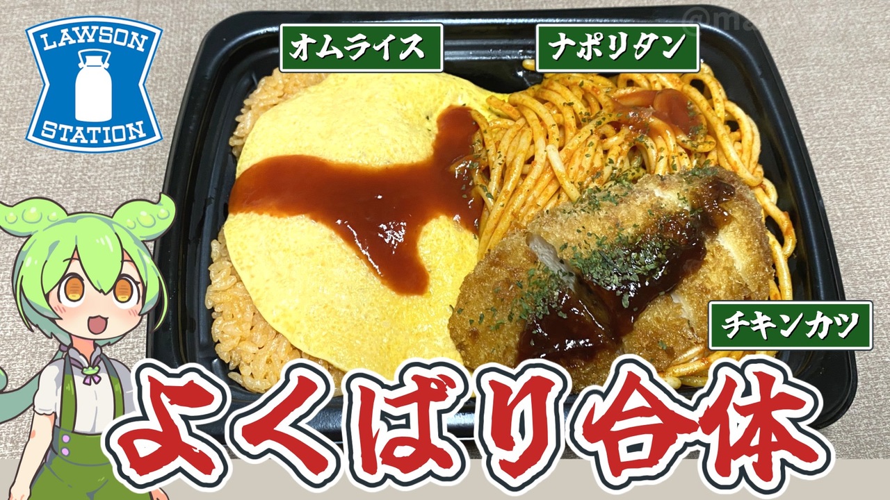 2025年3月11日、ローソンから発売された「よくばり合体メシ」というシリーズから<br>オムライス&ナポリタンを紹介します。<br><br><br>【関連動画】<br>トップバリュの黄色いヤツ「ガッツリシリーズ ペペロンチーノ&ガーリックライス、チキンのせ」2024.03.31<br><a href="https://www.nicovideo.jp/watch/sm43556287" target="_blank" rel="noopener nofollow">https://www.nicovideo.jp/watch/sm43556287</a><br><br>【参考】<br>2025年3月11日(火)、「よくばり合体メシ」「よくばりセットメシ」シリーズが登場!2025.03.11(ローソン)<br><a href="https://www.lawson.co.jp/lab/tsuushin/art/1498388_4659.html" target="_blank" rel="noopener nofollow">https://www.lawson.co.jp/lab/tsuushin/art/1498388_4659.html</a><br>具!パン ハムカツ&焼きそば(ローソン)<br><a href="https://www.lawson.co.jp/recommend/original/detail/1504273_1996.html" target="_blank" rel="noopener nofollow">https://www.lawson.co.jp/recommend/original/detail/1504273_1996.html</a><br><br>【使用した素材】(※敬称略) <br>(合成音声)VOICEVOX/ずんだもん/四国めたん/<br><a href="https://voicevox.hiroshiba.jp/" target="_blank" rel="noopener nofollow">https://voicevox.hiroshiba.jp/</a> <br>(立ち絵)坂本アヒル<br> <a href="https://seiga.nicovideo.jp/seiga/im10788496?track" target="_blank" rel="noopener nofollow">https://seiga.nicovideo.jp/seiga/im10788496?track</a><br>(楽曲)甘茶の音楽工房/「楽しい麦畑」「フルーツパフェ」「お城の舞踏会」<br><a href="https://amachamusic.chagasi.com/" target="_blank" rel="noopener nofollow">https://amachamusic.chagasi.com/</a>