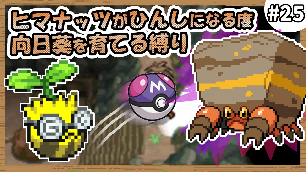 <span style="color: #38761d;">ノーカット版⇒</span><span style="color: #38761d;"><strong><a href="https://www.youtube.com/c/MrMasa1225" target="_blank" rel="noopener nofollow">https://www.youtube.com/c/MrMasa1225</a></strong></span><br><br>前⇒<a href="https://www.nicovideo.jp/watch/sm44841165" class="watch">sm44841165</a><br>次⇒<a href="https://www.nicovideo.jp/watch/sm44891221" class="watch">sm44891221</a><br><br>《以前のシーズン》<br>一期(ダイパ編)<a href="https://www.nicovideo.jp/mylist/68954563" target="_blank" rel="noopener">mylist/68954563</a><br>二期(HG編)<a href="https://www.nicovideo.jp/mylist/71388917" target="_blank" rel="noopener">mylist/71388917</a><br>三期(BW編)<a href="https://www.nicovideo.jp/mylist/75380341" target="_blank" rel="noopener">mylist/75380341</a><br><br>(ルール) <br>・ヒマナッツが瀕死になったら、現実でひまわりの種を植える <br>・向日葵が発芽したら戦闘に復帰(以後枯れるまで使用可) <br>・ひまわりが咲いたら「キマワリ」に進化させてよい <br>・<span style="color: #ff0000;">現実の草丈よりもレベルが高いヒマナッツは戦闘で使用禁止(1㎝=1レベルで計測) </span><br> ▪戦闘中のレベルアップで草丈を超えてしまった場合、戦闘終了後最短でボックスにしまう <br> ▪草丈オーバー状態で相手にダメージを与えた場合、即座に電源を切る(意図的に行うのは禁止) <br> ▪無敗のヒマナッツはレベル上限無し <br><br>(新規ヒマナッツ追加条件) <br>・ジムバッジをGET <br>・向日葵が発芽したらヒマナッツを新規追加できる (アイテムの制限) <br>・HP回復アイテム:おいしい水、木の実のみ <br>・復活アイテム:ふしぎな飴のみ<br> ※それ以外の種類のアイテムは特に制限なし <br><br>(その他ルール) <br>・意図的なリセット、バグの使用 <br>・ポケモンを大切にする <br>・秘伝要員は戦闘でダメージを与えてはならない <br>・最初のヒマナッツのみ草むらで捕獲する <br>・ルールに記載のないことは基本しても大丈夫
