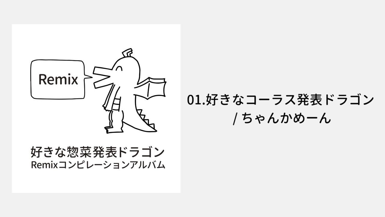 BOOTHで通販始めました!<br><a href="https://nbaji.booth.pm/items/6873494" target="_blank" rel="noopener nofollow">https://nbaji.booth.pm/items/6873494</a><br><br> ーーーー<br>タイトル:好きな惣菜発表ドラゴンRemixコンピレーションアルバム<br>頒布予定価格:2000円<br>イベント名:ニコニコ超会議2025クリエイタークロス<br>スペース番号:H2 う-34 ボカ<br>出展スペース名:キテとセリフとはゆ茶とンバヂの直売所<br>ジャケットイラストのダウンロードはこちら↓ <br><a href="https://drive.google.com/drive/folders/1K7iAuFbeCfAHdsV5OFy1O7UEji79Il52?usp=sharing" target="_blank" rel="noopener nofollow">https://drive.google.com/drive/folders/1K7iAuFbeCfAHdsV5OFy1O7UEji79Il52?usp=sharing</a><br>ーーーー<br><br>【Remix(五十音順)】<br>浅倉森 @mori4mirage<br>玄狐 @Kuro_kitsune___<br>しゃいと @shaito_otiahs<br>尻山ドグマ @dogma_nium_<br>szri @szri__<br>ちゃんかめーん @chanka_meen<br>なみぐる @namigroove<br>もずらいと @moslite_music<br>雪乃トケル @Yukino_tokeru<br>ゆにまる @Unimal_Room<br>Ryo(トパーズP)@ryo_concertina<br>ンバヂ @nbaji9<br><br>design: 遊凪 @THE_BOON_109<br>mastering: appy @appy_7<br>illustration:ンバヂ @nbaji9<br><br>【収録曲】<br>01.好きなコーラス発表ドラゴン / ちゃんかめーん 歌:初音ミク<br>02.好きな惣菜発表ドラゴン SUMMER REMIX / 尻山ドグマ 歌:重音テト<br>03.好きな惣菜発表ドラゴン_16evenfunkremix / ゆにまる なみぐる 歌:重音テト<br>04.好きな惣菜発表Houseドラゴン / 雪乃トケル 歌:重音テト<br>05.好きなケルト楽器発表ドラゴン / Ryo(トパーズP) 歌:初音ミク<br>06.好きな転調(遠隔調)発表ドラゴン / しゃいと 歌:初音ミク<br>07.好きな惣菜発表ドラゴン (szri remix) / szri 歌:重音テト<br>08.好きなリズム発表ドラゴン / 玄狐 歌:狐子<br>09.好きなUKG発表ドラゴン / なみぐる 歌:重音テト<br>10.好きな惣菜発表ドラゴン もりRemix / 浅倉森 歌:重音テト<br>11.好きな惣菜発表ドラゴン ンバヂRemix / ンバヂ 歌:重音テト<br>12.好きなアレンジ発表ドラゴン / もずらいと 歌:初音ミク