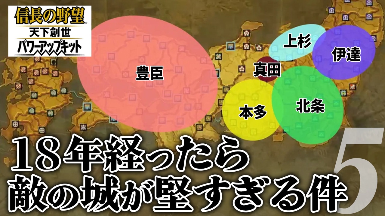 次:パート06➡<a href="https://www.nicovideo.jp/watch/sm44877585" class="watch">sm44877585</a><br>前:パート04➡<a href="https://www.nicovideo.jp/watch/sm44851192" class="watch">sm44851192</a><br>最初:パート01➡<a href="https://www.nicovideo.jp/watch/sm44811105" class="watch">sm44811105</a><br>前章:パート01➡<a href="https://www.nicovideo.jp/watch/sm44589431" class="watch">sm44589431</a><br><br>【目次】<br>茶番劇は撮れ高模索中<br><a href="#" class="seekTime" data-seekTime="0:00" onclick="seekNicoPlayer('#0:00'); return false;">#0:00</a> プレイ本編<br>――――――――――――――――――――――――――――――――――――――<br><『信長の野望・天下創世withパワーアップキット』製品情報> <br>ジャンル :歴史シミュレーションゲーム <br> ©コーエーテクモゲームス All rights reserved.<br>―――――――――――――――――――――――――――<br>開始シナリオ:1590年梅雨 政宗反攻 <br>大名:真田昌幸 <br>難易度:超級 歴史イベント:あり<br>―――――――――――――――――――――――――――<br>BGM(チャンネル用エンディングテーマ他):若林タカツグ<br>▶ X:<a href="https://twitter.com/cocoa2448" target="_blank" rel="noopener nofollow">https://twitter.com/cocoa2448</a><br>▶ youtube:<a href="https://youtube.com/@Takatsugu" target="_blank" rel="noopener nofollow">https://youtube.com/@Takatsugu</a><br>―――――――――――――――――――――――――――<br>ゲームプレイ・動画制作:アシェ<br>サムネ制作及び動画制作補助:レシル<br>―――――――――――――――――――――――――――<br>◇Twitter(アシェ):<a href="https://twitter.com/AcierRoi" target="_blank" rel="noopener nofollow">https://twitter.com/AcierRoi</a><br>◇Twitter(レシル):<a href="http://twitter.com/reciru" target="_blank" rel="noopener nofollow">http://twitter.com/reciru</a><br><br>