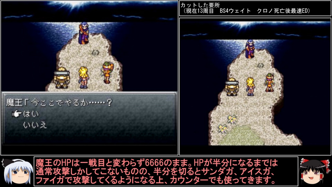 13周目のpart1です。<br>差分回収の残り6周、はーじまーるよー!<br><br>前→<a href="https://www.nicovideo.jp/watch/sm44807167" class="watch">sm44807167</a><br>次→<a href="https://www.nicovideo.jp/watch/sm44877879" class="watch">sm44877879</a><br><br>YouTube版→<a href="https://youtu.be/W7hTQn3aSVs" target="_blank" rel="noopener nofollow">https://youtu.be/W7hTQn3aSVs</a><br><br>縛りルール<br>①一度使った武器・防具・アクセサリー・道具・技・連携は<br> 次周回以降使用禁止(売却も解禁扱い)<br><br>②一度戦った敵シンボルとの再戦禁止。<br><br>③初戦闘の敵からの逃走禁止。<br><br>④裏技、バグ技、状況再現禁止。<br><br>⑤BS1アクティブからBS8ウェイトまで<br> 全てのバトルスピードとバトルモードで攻略する。<br><br>⑥各周回において見る予定のED条件を<br> 満たした段階で即ラヴォスと戦いに行く。<br><br>※ネタバレ注意です<br><br>このページ、動画で利用している弊社または弊社のライセンサーが権利を有する著作物の転載・配布は禁止いたします。<br>© 1995, 2018 SQUARE ENIX<br>Illustration: © 1995 BIRD STUDIO / SHUEISHA<br>Story and Screenplay: © 1995, 2008 ARMOR PROJECT / SQUARE ENIX<br><br>AquesTalk2ライセンスID:AQTK2WINUSR23122185<br /><br><br>❤いいねを押していただけるとモチベーションと投稿速度が上がるので宜しくお願い致します!<br><br>作者ツイッター→ <a href="https://twitter.com/nig0117" target="_blank" rel="noopener nofollow">https://twitter.com/nig0117</a><br>PIXIV FANBOX→ <a href="https://sutanokeiji.fanbox.cc/" target="_blank" rel="noopener nofollow">https://sutanokeiji.fanbox.cc/</a><br><br>( 以前はWEB小説書いてました→ <a href="https://kakuyomu.jp/works/1177354054884910267" target="_blank" rel="noopener nofollow">https://kakuyomu.jp/works/1177354054884910267</a> )