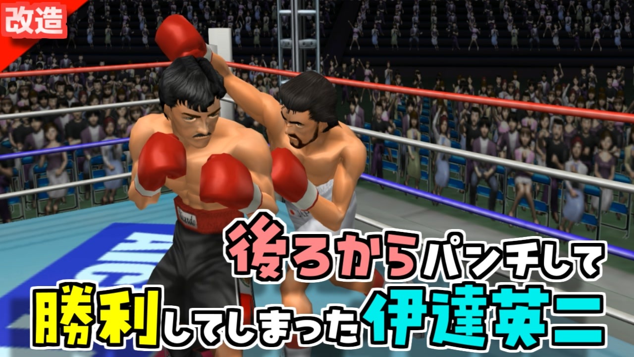 改造伊達英二シリーズを見ていて思ったのは、兎に角足を止めて打ち合う以上<br>ダメージレースで勝てないという事です。<br>と言う事は、足を止めずに打つパンチを開発出来たら・・・<br>と言うのが今日の改造の方向性です。<br><br>改造内容は<br>通常のジャブ、ストレート、フック、アッパーを<br>ダッシュ時に発生するそれぞれのパンチと差し替えてみました。<br>これで動きながらパンチをするので、リカルドからは的を絞りにくいはず<br>と言う理屈になりますが、まさかの結果が・・・<br><br>でもね、改造伊達英二シリーズは、まだだ、まだ終わらんよ(多分)<br><br>使用ソフト:はじめの一歩 2 VICTORIOUS ROAD PS2版<br>ジャンル:ボクシングゲーム<br><br>会長 VS リカルド →<a href="https://www.nicovideo.jp/watch/sm44079325" class="watch">sm44079325</a><br>デブになった鷹村 →<a href="https://www.nicovideo.jp/watch/sm43384767" class="watch">sm43384767</a><br>パパイヤ迫真の追撃 →<a href="https://www.nicovideo.jp/watch/sm44326277" class="watch">sm44326277</a><br>ゲロ道 VS アルフレド →<a href="https://www.nicovideo.jp/watch/sm44423708" class="watch">sm44423708</a><br>一歩追い打ちしてしまう →<a href="https://www.nicovideo.jp/watch/sm44079346" class="watch">sm44079346</a><br />動画に「いいね!」「マイリスト登録」よろしくお願いします。<br><br>・おすすめ<br>[TAS]Grand Theft Auto 3 Part1→<a href="https://www.nicovideo.jp/watch/sm14718961" class="watch">sm14718961</a><br>[TAS]MaxPayne デッドターゲット Part1→<a href="https://www.nicovideo.jp/watch/sm15093299" class="watch">sm15093299</a><br>[TAS]michigan Part1→<a href="https://www.nicovideo.jp/watch/sm18393230" class="watch">sm18393230</a><br><br>サポート頂けると励みになります<br>魔界塔士のサポーターになる→<a href="https://creator-support.nicovideo.jp/registration/15153622" target="_blank" rel="noopener nofollow">https://creator-support.nicovideo.jp/registration/15153622</a><br><br>TAS動画まとめ→<a href="https://koeiprogenitor.com/tas/matome/" target="_blank" rel="noopener nofollow">https://koeiprogenitor.com/tas/matome/</a><br>つべ→<a href="https://www.youtube.com/user/koeiprogenitor1/" target="_blank" rel="noopener nofollow">https://www.youtube.com/user/koeiprogenitor1/</a><br>インスタ→<a href="https://www.instagram.com/makaitoshi" target="_blank" rel="noopener nofollow">https://www.instagram.com/makaitoshi</a><br><br>本編→シリーズ一覧見てね<br>