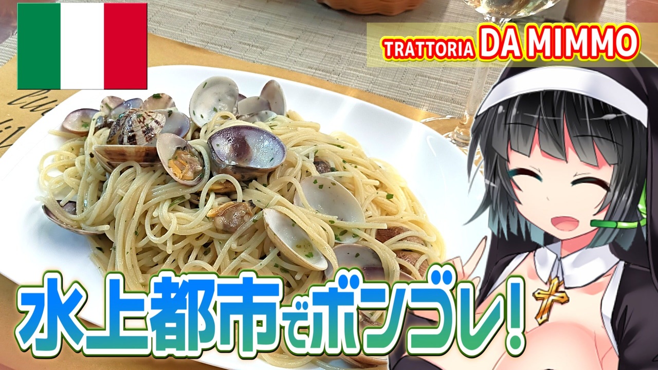 イタリアでも特に有名な観光地、<span style="color: #0000ff; font-size: 16px;"><strong>水上都市ヴェネツィア</strong></span>。<br>裏道で見つけた<span style="color: #38761d; font-size: 16px;"><strong>「TRATTORIA DA MIMMO」</strong></span>は、素朴で素敵な大衆食堂。<br>港町らしく海のスパゲティを楽しみましょう!<br>ヴェネツィア観光紹介や歌もありますよ!<br><br><br>〈店舗情報〉<br>■TRATTORIA DA MIMMO<br> ・営業時間:12〜22時<br> ・定休日…木曜、日曜<br> ・最寄駅…Stazione di Venezia Santa Lucia〜徒歩10分<br><br>※最新の営業情報はHPやSNS等で確認を!<br> <a href="https://www.tripadvisor.jp/Restaurant_Review-g187870-d1917367-Reviews-Trattoria_Da_Mimmo-Venice_Veneto.html?m=69573" target="_blank" rel="noopener nofollow">https://www.tripadvisor.jp/Restaurant_Review-g187870-d1917367-Reviews-Trattoria_Da_Mimmo-Venice_Veneto.html?m=69573</a><br><br><br>・Awamori_pf【ゲーム音楽ピアノ演奏】様 より<br> ARIA The ORIGINATION「スピラーレ / 牧野由依」ピアノ伴奏(カラオケ) お借りしました!<br> <a href="https://www.youtube.com/watch?v=RsAXvMHHUZ8" target="_blank" rel="noopener nofollow">https://www.youtube.com/watch?v=RsAXvMHHUZ8</a><br><br> <br /><フィッシング&キッチン><br>・釣りのあとには♪ :<a href="https://www.nicovideo.jp/mylist/70573242" target="_blank" rel="noopener">mylist/70573242</a><br><br><グルメ><br>・セイカの麺Life! :<a href="https://www.nicovideo.jp/mylist/73415443" target="_blank" rel="noopener">mylist/73415443</a><br>・琴葉うまいもの巡り :<a href="https://www.nicovideo.jp/mylist/70295227" target="_blank" rel="noopener">mylist/70295227</a><br><br><世界一周旅行><br>・地球ぐるっと旅! :<a href="https://www.nicovideo.jp/mylist/77484298" target="_blank" rel="noopener">mylist/77484298</a><br><br><キッチン><br>・琴燻♪(燻製) :<a href="https://www.nicovideo.jp/mylist/70979610" target="_blank" rel="noopener">mylist/70979610</a><br>・キッチン投稿祭 :<a href="https://www.nicovideo.jp/mylist/71621280" target="_blank" rel="noopener">mylist/71621280</a><br>・きりたんめん! :<a href="https://www.nicovideo.jp/mylist/74447174" target="_blank" rel="noopener">mylist/74447174</a><br><br><その他><br>・音楽 (SynthesizerV) :<a href="https://www.nicovideo.jp/mylist/72930784" target="_blank" rel="noopener">mylist/72930784</a><br>・あおいガーデニング! :<a href="https://www.nicovideo.jp/mylist/73119922" target="_blank" rel="noopener">mylist/73119922</a>
