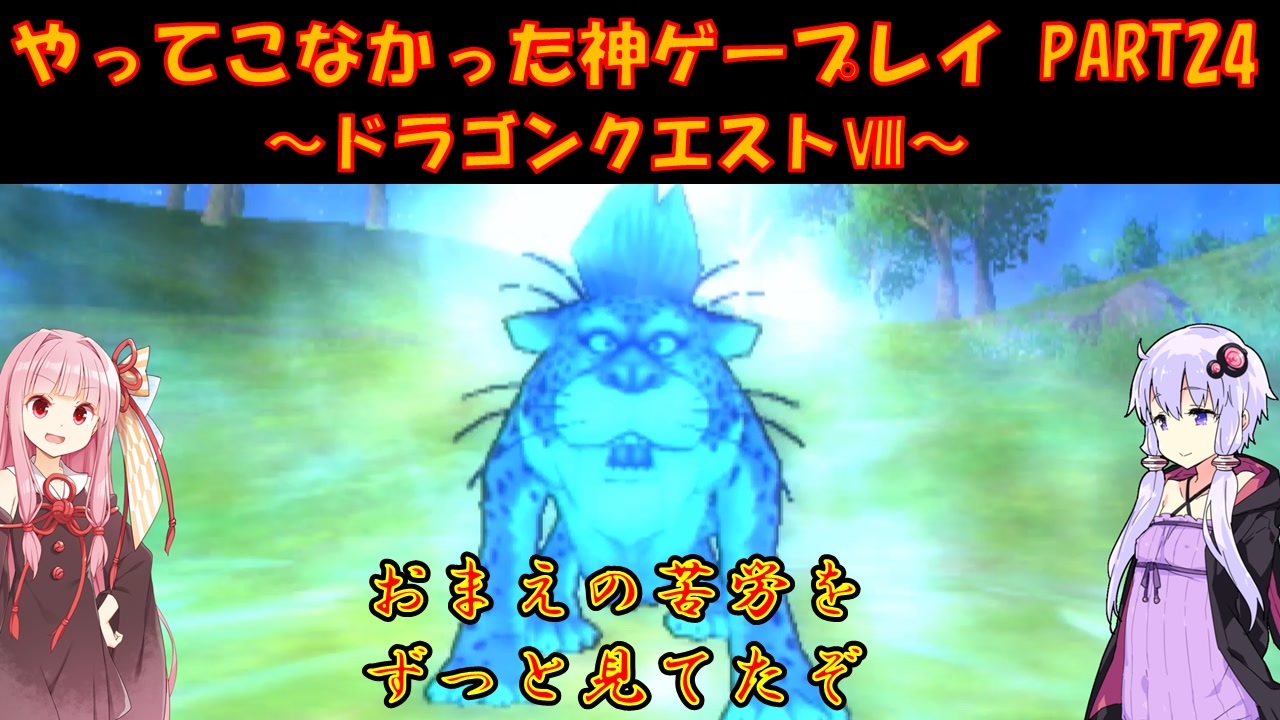 PS2版 ドラゴンクエストⅧをプレイ<br>ゆかりさんはメジャーじゃないゲームをやる俺カッケー族だったのでドラクエをやったことがありませんでした(DSのⅤ以外)<br><br>ゆ:ゴ〇ルドタイガーさん!?<br>茜:別人・・・、別トラやで<br><br>PART1:<a href="https://www.nicovideo.jp/watch/sm44676588" target="_blank" rel="noopener nofollow">https://www.nicovideo.jp/watch/sm44676588</a><br><br>各DQシリーズ第1回リンク<br>DQ1:<a href="https://www.nicovideo.jp/watch/sm41819145" target="_blank" rel="noopener nofollow">https://www.nicovideo.jp/watch/sm41819145</a><br>DQ2:<a href="https://www.nicovideo.jp/watch/sm41895278" target="_blank" rel="noopener nofollow">https://www.nicovideo.jp/watch/sm41895278</a><br>DQ3:<a href="https://www.nicovideo.jp/watch/sm42034398" target="_blank" rel="noopener nofollow">https://www.nicovideo.jp/watch/sm42034398</a><br>DQ4:<a href="https://www.nicovideo.jp/watch/sm42520974" target="_blank" rel="noopener nofollow">https://www.nicovideo.jp/watch/sm42520974</a><br>DQ5:<a href="https://www.nicovideo.jp/watch/sm42848575" target="_blank" rel="noopener nofollow">https://www.nicovideo.jp/watch/sm42848575</a><br>DQ6:<a href="https://www.nicovideo.jp/watch/sm43080264" target="_blank" rel="noopener nofollow">https://www.nicovideo.jp/watch/sm43080264</a><br>DQ7:<a href="https://www.nicovideo.jp/watch/sm43851863" target="_blank" rel="noopener nofollow">https://www.nicovideo.jp/watch/sm43851863</a><br>DQM1:<a href="https://www.nicovideo.jp/watch/sm43525709" target="_blank" rel="noopener nofollow">https://www.nicovideo.jp/watch/sm43525709</a><br>DQMCH:<a href="https://www.nicovideo.jp/watch/sm44443421" target="_blank" rel="noopener nofollow">https://www.nicovideo.jp/watch/sm44443421</a><br><br>動画内で使用させていただいた素材<br>【イラスト】<br>結月ゆかり→ペテン師様:<a href="https://seiga.nicovideo.jp/seiga/im5494168" target="_blank" rel="noopener nofollow">https://seiga.nicovideo.jp/seiga/im5494168</a><br>琴葉茜→ユメのオワリ様:<a href="https://seiga.nicovideo.jp/seiga/im10706241" target="_blank" rel="noopener nofollow">https://seiga.nicovideo.jp/seiga/im10706241</a><br><br>【音声】<br>A.I.Voice:琴葉茜<br><a href="https://aivoice.jp/product/kotonoha/" target="_blank" rel="noopener nofollow">https://aivoice.jp/product/kotonoha/</a><br><br>A.I.Voice:結月ゆかり<br><a href="https://aivoice.jp/product/yukari/" target="_blank" rel="noopener nofollow">https://aivoice.jp/product/yukari/</a><br><br>この動画で利用している株式会社スクウェア・エニックスを代表とする共同著作者が権利を所有する著作物及びスギヤマ工房有限会社が権利を所有する楽曲の転載・配布は禁止いたします。<br>© 2004 ARMOR PROJECT/BIRD STUDIO/LEVEL-5/SQUARE ENIX All Rights Reserved.<br>© SUGIYAMA KOBO