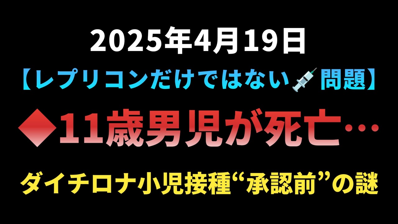 ◆11歳男児が死亡…ダイチロナ小児接種“承認前”の謎<br><a href="https://x.com/fraisst/status/1911681539907399924?t=nn4JPLKXVido8PI6Qy8NMA&s=19" target="_blank" rel="noopener nofollow">https://x.com/fraisst/status/1911681539907399924?t=nn4JPLKXVido8PI6Qy8NMA&s=19</a><br><br><br>◆なぜ?承認前に11歳へ接種…ダイチロナ死亡報告の違和感<br><a href="https://x.com/donkey1399/status/1912851888997089663?t=OhJpn0QCjD6tEyxzY59Wkw&s=19" target="_blank" rel="noopener nofollow">https://x.com/donkey1399/status/1912851888997089663?t=OhJpn0QCjD6tEyxzY59Wkw&s=19</a><br><br><br>2024年末、第一三共のコロナワクチン「ダイチロナ」による死亡報告に、静かに広がる疑問。亡くなったのは11歳の男の子。しかし、ダイチロナが小児に正式に承認されたのは翌年2025年3月。それ以前の接種はなぜ起こったのか?報告書にあるのは「心肺停止」と「評価不能」の文字だけ。厚労省もメディアも沈黙するなか、誰もが見落としてはいけない“承認の壁”と“命の重み”が問われています。この動画では、公式文書をもとに見過ごされてきたリスクを冷静に追及します。<br><br><br>◆ 今回の台本<br><a href="https://keiichiro8140.hatenablog.com/entry/20250419001" target="_blank" rel="noopener nofollow">https://keiichiro8140.hatenablog.com/entry/20250419001</a><br><br><br>ダイチロナ<br>第一三共<br>コロナワクチン<br>ワクチン副反応<br>11歳男児<br>未承認接種<br>心肺停止<br>因果関係不明<br>小児接種追加<br>死亡報告<br>メディア沈黙<br><br><br>マイリンク<br><a href="https://lit.link/keiichiro8140" target="_blank" rel="noopener nofollow">https://lit.link/keiichiro8140</a><br><br><br />著作権、肖像権に配慮して作成しております。<br><br>◆気になったニュースの台本!?<br>メモ代わりに作った台本をそのままあげてます<br><a href="https://keiichiro8140.hatenablog.com/." target="_blank" rel="noopener nofollow">https://keiichiro8140.hatenablog.com/.</a><br><br><br>ここからはシリーズ紹介<br><br><br>◆ ワクチン解毒・デトックス<br><a href="https://x.gd/fZweg" target="_blank" rel="noopener nofollow">https://x.gd/fZweg</a><br><br>◆ウイリアム・マキス博士のがん治療(イベルメクチン・フェンベンダゾール等)<br><a href="https://x.gd/AtFYS" target="_blank" rel="noopener nofollow">https://x.gd/AtFYS</a><br><br>◆予防接種健康被害救済制度<br><a href="https://x.gd/0xK9x" target="_blank" rel="noopener nofollow">https://x.gd/0xK9x</a><br><br>◆気になったニュース #1501~<br><br>◆ 【ショートver】気になったニュース<br><a href="https://x.gd/7MxXC" target="_blank" rel="noopener nofollow">https://x.gd/7MxXC</a><br><br>◆ 気になったニュース #1001~<br><a href="https://x.gd/Lp8gv" target="_blank" rel="noopener nofollow">https://x.gd/Lp8gv</a><br><br>◆ 気になったニュース #501~<br><a href="https://x.gd/EmbS4" target="_blank" rel="noopener nofollow">https://x.gd/EmbS4</a><br><br>◆ 気になったニュース #1~#500<br><a href="https://x.gd/uPhNb" target="_blank" rel="noopener nofollow">https://x.gd/uPhNb</a><br><br>◆ X(旧Twitter)・テレグラムで気になった情報<br><a href="https://x.gd/YG6FT" target="_blank" rel="noopener nofollow">https://x.gd/YG6FT</a><br><br>◆ 日比谷5万人パレードデ⚪生放送アーカイブ動画<br><a href="https://x.gd/3CHJv" target="_blank" rel="noopener nofollow">https://x.gd/3CHJv</a><br><br>◆日比谷5万人パレード⚪モのマイリスト作ってみました<br><a href="https://nico.ms/mylist/76828848?ref=sp_other" target="_blank" rel="noopener nofollow">https://nico.ms/mylist/76828848?ref=sp_other</a><br><br>◆3.30 令和の百姓⚪⚪<br><a href="https://www.nicovideo.jp/series/511791?ref=garage_share_other" target="_blank" rel="noopener nofollow">https://www.nicovideo.jp/series/511791?ref=garage_share_other</a><br><br>◆ 及川幸久さんの【XNEWS】シリーズ<br><a href="https://x.gd/3k78K" target="_blank" rel="noopener nofollow">https://x.gd/3k78K</a><br><br>◆これまでの動画<a href="https://x.gd/sPXoJ" target="_blank" rel="noopener nofollow">https://x.gd/sPXoJ</a><br><br>◆もしも(BAN)の時のためのマイリンク集<a href="https://lit.link/K-16_News44" target="_blank" rel="noopener nofollow">https://lit.link/K-16_News44</a><br><br>