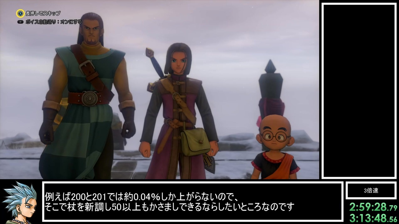 ドラクエ11の3Dモード固定のRTA<br>計測区間は「冒険の書をつくる」から「やっつけた!」の表示まで<br>バグの使用はこのカテゴリでは禁止<br>ネタバレありです、悪しからず<br><br>そして二度目の死、本当になんでこれ記録出たの?<br><br>part1→<a href="https://www.nicovideo.jp/watch/sm44798320" class="watch">sm44798320</a><br>次→シリーズからよろしく、概要欄の一番下にあるよ<br>これのマイリス→<a href="https://www.nicovideo.jp/mylist/77907732" target="_blank" rel="noopener">mylist/77907732</a><br>無編集垂れ流し→<a href="https://youtu.be/lBX0PaSoLpk" target="_blank" rel="noopener nofollow">https://youtu.be/lBX0PaSoLpk</a><br>うp動画まとめ→<a href="https://www.nicovideo.jp/mylist/71230916" target="_blank" rel="noopener">mylist/71230916</a><br><br>海底王国~ユグノア城跡まで<br><br>※この動画の一部または全部を外部サイト等へ転載することを禁じます。<br> 動画紹介等で動画の一部を引用するのは構いません。<br><br>この動画で利用している株式会社スクウェア・エニックスを代表とする共同著作者が権利を所有する著作物及びスギヤマ工房有限会社が権利を所有する楽曲の転載・配布は禁止いたします。<br>(C) ARMOR PROJECT/BIRD STUDIO/SQUARE ENIX All Rights Reserved.<br>(C) SUGIYAMA KOBO (P) SUGIYAMA KOBO<br><br><a target="_blank" href="https://qa.nicovideo.jp/faq/show/19424?site_domain=default" style="font-size: 13px;color: #657586; text-decoration: underline; line-height: 1.4">この動画は投稿者によって修正されました</a>