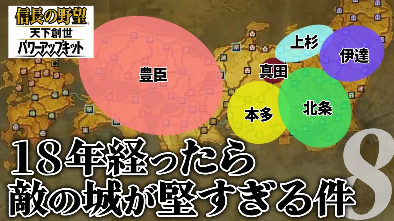 次:パート09➡<a href="https://www.nicovideo.jp/watch/sm44930742" class="watch">sm44930742</a><br>前:パート07➡<a href="https://www.nicovideo.jp/watch/sm44889400" class="watch">sm44889400</a><br>最初:パート01➡<a href="https://www.nicovideo.jp/watch/sm44811105" class="watch">sm44811105</a><br>前章:パート01➡<a href="https://www.nicovideo.jp/watch/sm44589431" class="watch">sm44589431</a><br><br>【目次】<br>茶番劇は次回の最終回で作る予定です。<br><a href="#" class="seekTime" data-seekTime="0:00" onclick="seekNicoPlayer('#0:00'); return false;">#0:00</a> プレイ本編<br>――――――――――――――――――――――――――――――――――――――<br><『信長の野望・天下創世withパワーアップキット』製品情報> <br>ジャンル :歴史シミュレーションゲーム <br> ©コーエーテクモゲームス All rights reserved.<br>―――――――――――――――――――――――――――<br>開始シナリオ:1590年梅雨 政宗反攻 <br>大名:真田昌幸 <br>難易度:超級 歴史イベント:あり<br>―――――――――――――――――――――――――――<br>BGM(チャンネル用エンディングテーマ他):若林タカツグ<br>▶ X:<a href="https://twitter.com/cocoa2448" target="_blank" rel="noopener nofollow">https://twitter.com/cocoa2448</a><br>▶ youtube:<a href="https://youtube.com/@Takatsugu" target="_blank" rel="noopener nofollow">https://youtube.com/@Takatsugu</a><br>―――――――――――――――――――――――――――<br>ゲームプレイ・動画制作:アシェ<br>サムネ制作及び動画制作補助:レシル<br>―――――――――――――――――――――――――――<br>◇Twitter(アシェ):<a href="https://twitter.com/AcierRoi" target="_blank" rel="noopener nofollow">https://twitter.com/AcierRoi</a><br>◇Twitter(レシル):<a href="http://twitter.com/reciru" target="_blank" rel="noopener nofollow">http://twitter.com/reciru</a><br><br>