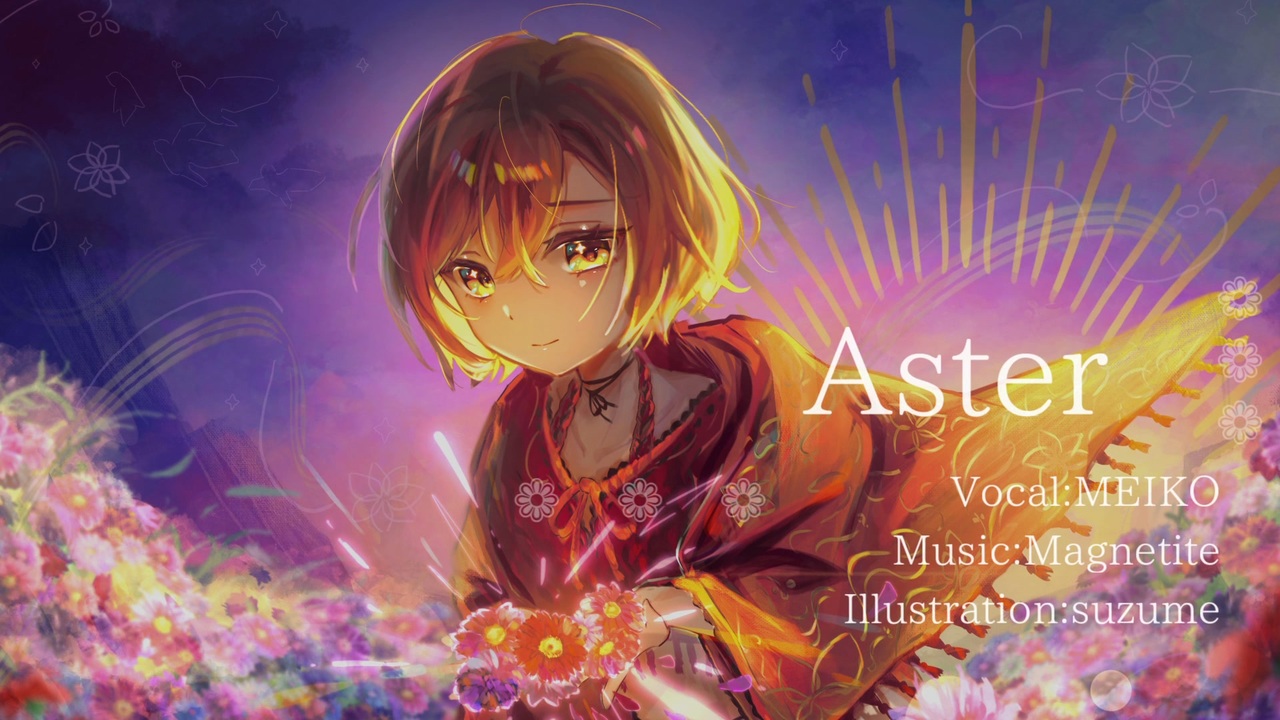 そのどれも幸せの形になった<br><br>#植物ソング投稿祭2025 参加楽曲です。<br><br>Vo:MEIKO<br>Illust:雀様 <a href="https://x.com/szm_oekaki" target="_blank" rel="noopener nofollow">https://x.com/szm_oekaki</a><br>Music:Magnetite <a href="https://x.com/Fe3O4_11" target="_blank" rel="noopener nofollow">https://x.com/Fe3O4_11</a><br><br>告知ツイート :<a href="https://x.com/Fe3O4_11/status/" target="_blank" rel="noopener nofollow">https://x.com/Fe3O4_11/status/</a><br><br>inst<br>音楽(第1期):<a href="https://www.nicovideo.jp/mylist/36419681" target="_blank" rel="noopener">mylist/36419681</a><br>音楽(第2期):<a href="https://www.nicovideo.jp/mylist/73990872" target="_blank" rel="noopener">mylist/73990872</a><br><br>冷たさより明るさが<br>人見知りな肌になじむ<br>思い出すように暮れなずむ<br>夕焼けが追いかける<br><br>口遊む歌さえ すべて飲みこんでいった<br>赤い花が焼き付いた<br><br>夏といっしょに咲く星<br>そのどれも幸せの形になった<br>こんなにも優しいから<br>ずっと枯れないで このまま変わらないで<br>どうか褪せないで 無垢なまま咲いていて<br><br><br>きっと誰も悪くなくて<br>夢を見なくなっただけ<br>それでも人の暖かさが好きで<br>だからこんな気持ちになって<br>彩りが張り裂けていく<br><br>散ることがこわいから<br>もう何も咲かないで 育たないでよ<br>繰り返せばつらいだけ<br>誰も教えてくれるわけないよな<br><br><br>夏といっしょに咲く星<br>言葉で飾れないほど幸せでした<br>挟んだ青の栞<br>どうか続きを紡がないで<br><br>夏といっしょに散る星<br>望んだ先にあった 望まぬ明日<br>こんなにも優しいから<br>枯れて初めて言葉に変わってゆく<br>どうか褪せないで 無垢なまま咲っていて<br>