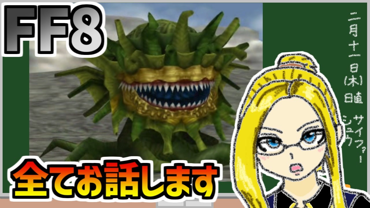 わかっちゃいました<br><br>モルボル経験値減少バグ:<a href="https://www.nicovideo.jp/watch/sm44889164" class="watch">sm44889164</a><br><br><strong>【FF8動画シリーズ】</strong><br>◆めちゃくちゃ楽してFF8:<a href="https://www.nicovideo.jp/watch/sm42634440" class="watch">sm42634440</a><br>◆FF8最少「倒した敵の数」クリアに挑戦:<a href="https://www.nicovideo.jp/watch/sm41181428" class="watch">sm41181428</a><br>◆△ボタン禁止でFF8:<a href="https://www.nicovideo.jp/watch/sm38924669" class="watch">sm38924669</a><br>◆FF8 1行動1回縛り:<a href="https://www.nicovideo.jp/watch/sm36982623" class="watch">sm36982623</a><br>◆石橋を叩いてFF8(PC版)を初見プレイ :<a href="https://www.nicovideo.jp/watch/sm34318717" class="watch">sm34318717</a><br>◆FF8最少コマンド入力回数クリアに挑戦:<a href="https://www.nicovideo.jp/watch/sm29792055" class="watch">sm29792055</a><br>◆FF8ノージャンクンション1人旅+α:<a href="https://www.nicovideo.jp/watch/sm27238226" class="watch">sm27238226</a><br><br><strong>【youtube版】<br><a href="https://youtu.be/I7GvekZqjPc" target="_blank" rel="noopener nofollow">https://youtu.be/I7GvekZqjPc</a></strong><br><br>Copyright (C) 1999, 2019 SQUARE ENIX CO., LTD. All Rights Reserved.