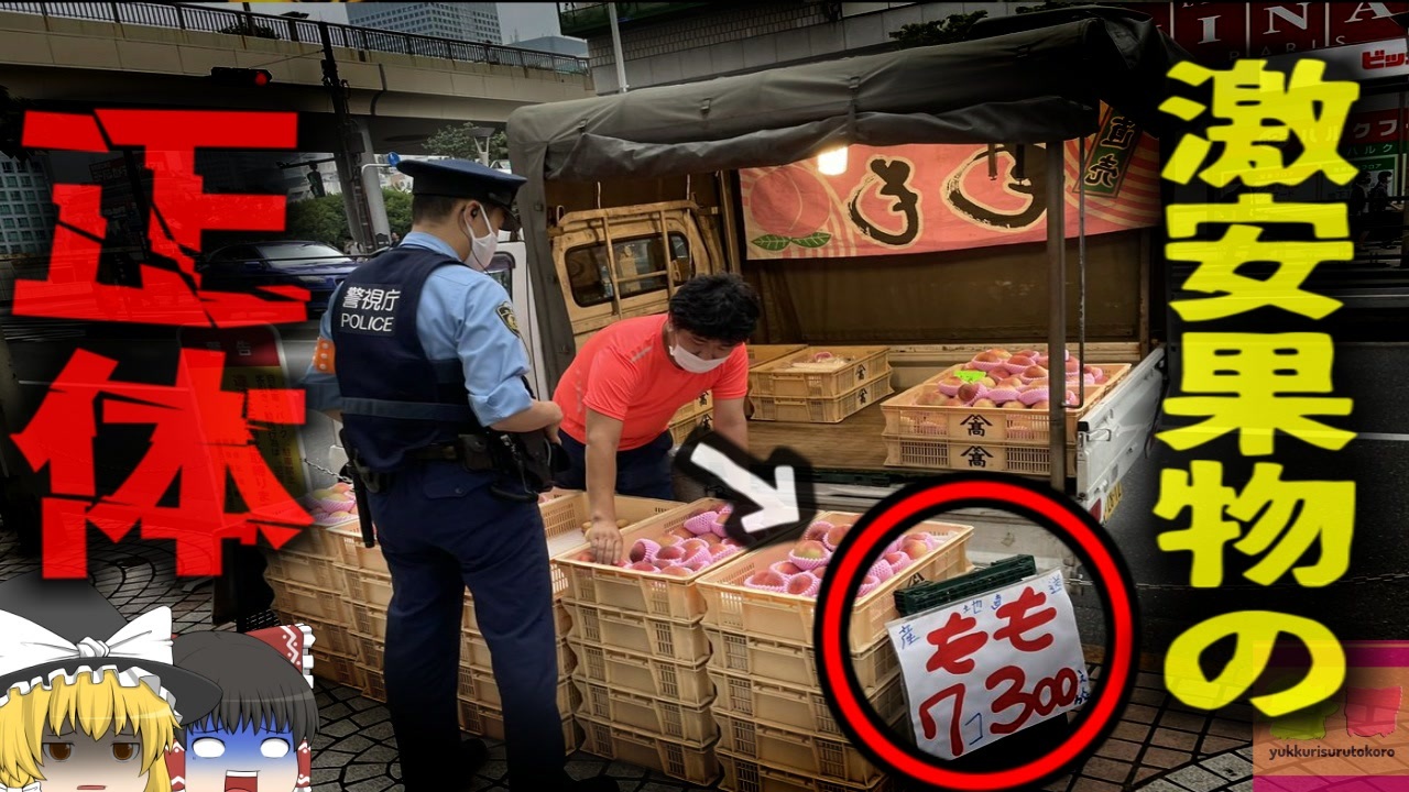 <a href="#" class="seekTime" data-seekTime="00:07" onclick="seekNicoPlayer('#00:07'); return false;">#00:07</a> 軽トラの果物移動販売<br><a href="#" class="seekTime" data-seekTime="00:47" onclick="seekNicoPlayer('#00:47'); return false;">#00:47</a> 怪しい店の目撃情報<br><a href="#" class="seekTime" data-seekTime="1:53" onclick="seekNicoPlayer('#1:53'); return false;">#1:53</a> フルーツのランク<br><a href="#" class="seekTime" data-seekTime="2:25" onclick="seekNicoPlayer('#2:25'); return false;">#2:25</a> 本来高級であるはずの「アールスメロン」<br><a href="#" class="seekTime" data-seekTime="3:00" onclick="seekNicoPlayer('#3:00'); return false;">#3:00</a> 集荷・卸売業者組合の証言<br><a href="#" class="seekTime" data-seekTime="4:50" onclick="seekNicoPlayer('#4:50'); return false;">#4:50</a> 道の駅などで正規路上販売のケースも<br><a href="#" class="seekTime" data-seekTime="6:00" onclick="seekNicoPlayer('#6:00'); return false;">#6:00</a> 景品表示法<br><a href="#" class="seekTime" data-seekTime="7:05" onclick="seekNicoPlayer('#7:05'); return false;">#7:05</a> 一定の時期に多くなる目撃情報<br><a href="#" class="seekTime" data-seekTime="7:35" onclick="seekNicoPlayer('#7:35'); return false;">#7:35</a> 摘発され外国人窃盗団逮捕に至ったケースも<br><a href="#" class="seekTime" data-seekTime="8:45" onclick="seekNicoPlayer('#8:45'); return false;">#8:45</a> 安全性についても疑問視されている<br><a href="#" class="seekTime" data-seekTime="9:33" onclick="seekNicoPlayer('#9:33'); return false;">#9:33</a> 果物の出荷には厳しい基準がある<br><a href="#" class="seekTime" data-seekTime="10:24" onclick="seekNicoPlayer('#10:24'); return false;">#10:24</a> 無暗に誹謗中傷してはいけない<br><a href="#" class="seekTime" data-seekTime="10:56" onclick="seekNicoPlayer('#10:56'); return false;">#10:56</a> 各都道府県相談・報告フォーム<br><br>引用・出展・参考文献(視聴者提供資料など<br>日本農業新聞<br><a href="https://x.gd/UsGhl" target="_blank" rel="noopener nofollow">https://x.gd/UsGhl</a><br><a href="https://x.gd/0aWm4" target="_blank" rel="noopener nofollow">https://x.gd/0aWm4</a><br>楽天ニュース<br>違反トラックが売ってた桃を盗難地域の農家に見てもらった結果「盗まれた桃の可能性高い」<br><a href="https://x.gd/wRXtX" target="_blank" rel="noopener nofollow">https://x.gd/wRXtX</a><br>山梨県公式ホームページ<br>果実泥棒情報提供フォーム【日下部警察署】<br><a href="https://x.gd/fnl7G" target="_blank" rel="noopener nofollow">https://x.gd/fnl7G</a><br>西日本新聞<br><br />※この動画は過去の事件を知り、現在でも同じことが発生する危険性を再認識、関与しないように促すための動画であり、視聴者を扇動、動揺を誘うためのコンテンツではありません。<br><br>ご要望にお応えして、メンバーシップの開設を行いました。<br>下記URLからも登録可能ですので、ご興味がある方は是非ご参加ください。<br><a href="https://www.youtube.com/channel/UCcT5a1J7XJW7CLYI2RKl4pw/join" target="_blank" rel="noopener nofollow">https://www.youtube.com/channel/UCcT5a1J7XJW7CLYI2RKl4pw/join</a><br><br><br>Twitter<br>→<a href="https://twitter.com/yukkurisurutoko" target="_blank" rel="noopener nofollow">https://twitter.com/yukkurisurutoko</a><br><br>取り急ぎ、簡易的にですがマイリストを作りました。<br>【ゆっくり解説】事故・事件関係紹介リスト <br><a href="https://www.nicovideo.jp/mylist/71034319" target="_blank" rel="noopener nofollow">https://www.nicovideo.jp/mylist/71034319</a><br>【ゆっくり解説】放射線系事故<br><a href="https://www.nicovideo.jp/mylist/71034368" target="_blank" rel="noopener nofollow">https://www.nicovideo.jp/mylist/71034368</a><br>【ゆっくり解説】鉄道系事故・事件関連<br><a href="https://www.nicovideo.jp/mylist/71034379" target="_blank" rel="noopener nofollow">https://www.nicovideo.jp/mylist/71034379</a>