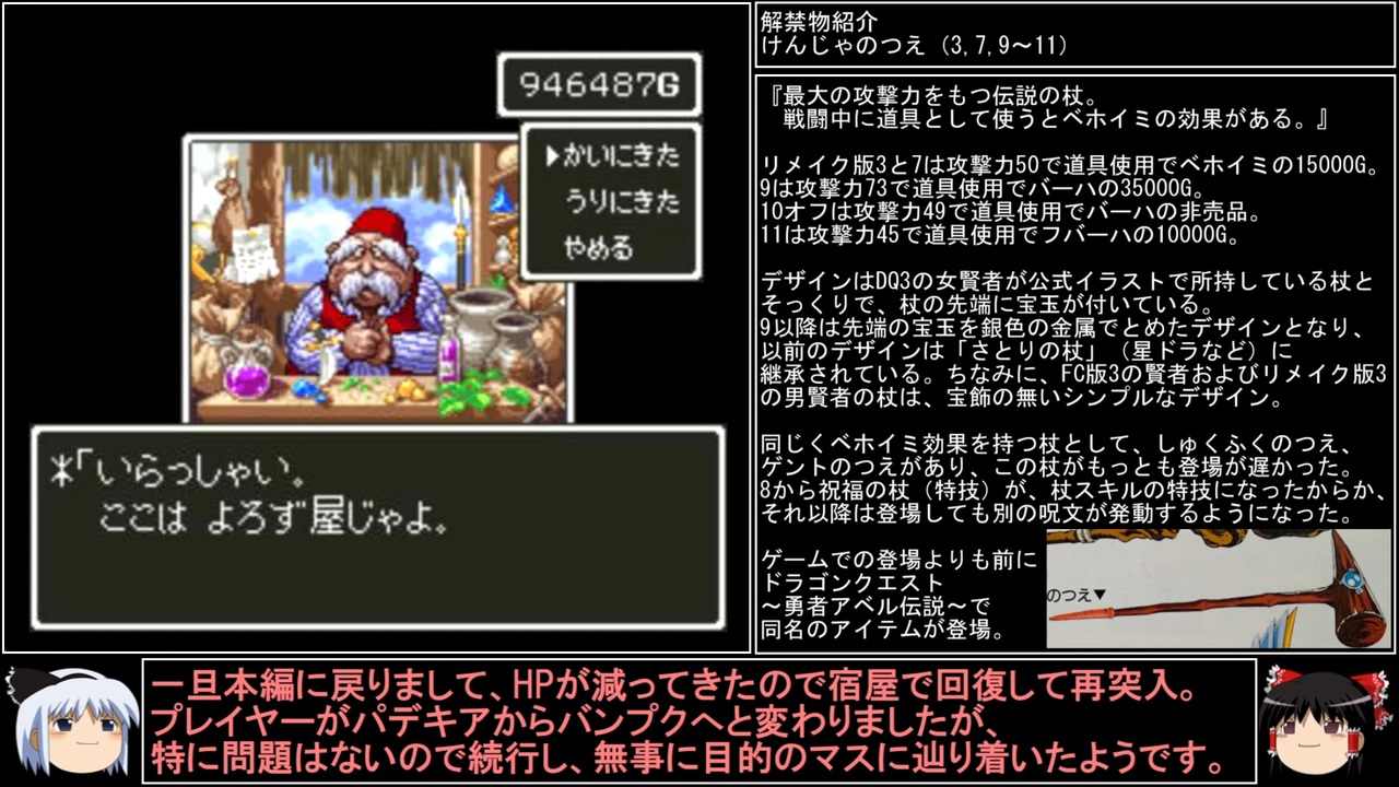 DQⅢの2周目、SFCDQⅢ編part11です。<br>アレフガルドの世界に降り立った一行がやることは……双六!<br><br>tanzaniteさんのダークソウル→<a href="https://www.nicovideo.jp/watch/sm44128533" class="watch">sm44128533</a><br>ヤマディグダさんのFF→<a href="https://www.nicovideo.jp/watch/sm44825756" class="watch">sm44825756</a><br>ごぶりんさんのポケモン→<a href="https://gobrin-nagase.hatenablog.com/entry/2025/04/27/121520" target="_blank" rel="noopener nofollow">https://gobrin-nagase.hatenablog.com/entry/2025/04/27/121520</a><br><br>前→<a href="https://www.nicovideo.jp/watch/sm44905437" class="watch">sm44905437</a><br>次→<a href="https://www.nicovideo.jp/watch/sm44957624" class="watch">sm44957624</a><br><br>YouTube版→<a href="https://youtu.be/uk8_YqTH1uk" target="_blank" rel="noopener nofollow">https://youtu.be/uk8_YqTH1uk</a><br><br>縛りルール(詳細はpart1参照)<br>①一度使った武器・防具・装飾品・道具・呪文・特技は<br> 次作品以降使用禁止。(売却も解禁扱い)<br><br> 一度使った職業(3,6,7)・仲間モンスター(5,6)・スカウトモンスター(8)は<br> 戦士(Ⅲ)、戦士(Ⅵ)のようにナンバリングで分類し次作品以降使用禁止。<br> また複数体加入できる仲間モンスターは一体まで。<br><br>②裏技、バグ技、全滅、逃走、おどかす禁止。<br> またダンジョン攻略とボス戦における状況再現禁止。<br><br>③ダンジョンとボス攻略は、全キャラのレベルを突入時、<br> 1周目は目標レベル+5。2周目は+10。3周目は+15まで。<br> ラスボスの目標レベルは45。裏ボスは50とする。<br>(目標レベルは各公式ガイドブックを参照)<br><br>④1周目はEDまで。2周目は裏ボス撃破まで。<br> 3周目は全てのボスを規定回数、規定ターン以内に倒す。<br>(回避可能なボスも倒し、闇ゾーマは3周全てで倒す)<br><br><br><span style="color: #262626;">※一部機種は互換機を使用してのプレイとなりますが、倍速機能やクイックセーブ・ロード、チートなどは一切使用しません。</span><br><br>※ネタバレ注意です<br><br>この動画で利用している株式会社スクウェア・エニックスを代表とする共同著作者が権利を所有する著作物及びスギヤマ工房有限会社が権利を所有する楽曲の転載・配布は禁止いたします。<br>(C) ARMOR PROJECT/BIRD STUDIO/SQUARE ENIX All Rights Reserved.<br>(C) SUGIYAMA KOBO (P) SUGIYAMA KOBO<br><br>AquesTalk2ライセンスID:AQTK2WINUSR23122185<br /><br><br>❤いいねを押していただけるとモチベーションと投稿速度が上がるので宜しくお願い致します!<br><br>作者ツイッター→ <a href="https://twitter.com/nig0117" target="_blank" rel="noopener nofollow">https://twitter.com/nig0117</a><br>PIXIV FANBOX→ <a href="https://sutanokeiji.fanbox.cc/" target="_blank" rel="noopener nofollow">https://sutanokeiji.fanbox.cc/</a><br><br>( 以前はWEB小説書いてました→ <a href="https://kakuyomu.jp/works/1177354054884910267" target="_blank" rel="noopener nofollow">https://kakuyomu.jp/works/1177354054884910267</a> )
