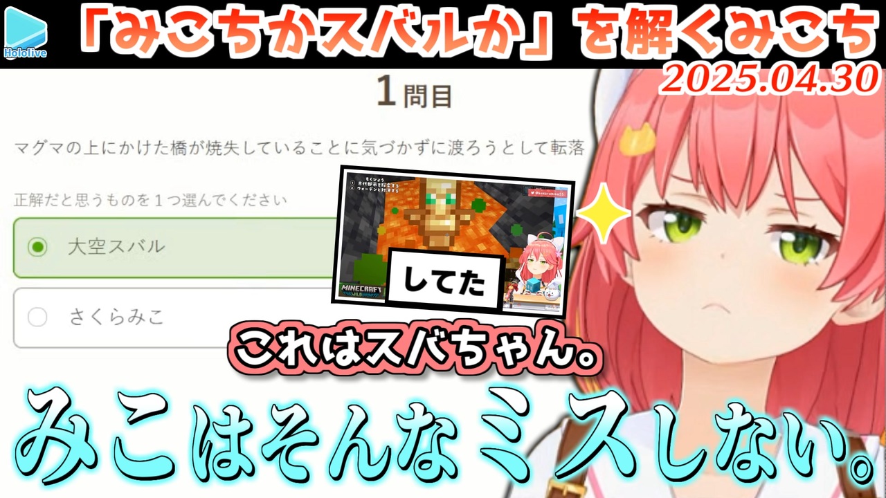 <a href="#" class="seekTime" data-seekTime="00:00" onclick="seekNicoPlayer('#00:00'); return false;">#00:00</a> みこちかスバルか<br><a href="#" class="seekTime" data-seekTime="02:47" onclick="seekNicoPlayer('#02:47'); return false;">#02:47</a> 解答<br><br>Miko Ch. さくらみこ <a href="https://t.co/FM8eBkuiOO" target="_blank" rel="noopener nofollow">https://t.co/FM8eBkuiOO</a><br>Subaru Ch. 大空スバル <a href="https://t.co/1XIcn8rNbM" target="_blank" rel="noopener nofollow">https://t.co/1XIcn8rNbM</a><br><br>この動画で利用している株式会社スクウェア・エニックスを代表とする共同著作者が権利を所有する著作物及びスギヤマ工房有限会社が権利を所有する楽曲の転載・配布は禁止いたします。<br>© ARMOR PROJECT/BIRD STUDIO/SPIKE CHUNSOFT/SQUARE ENIX All Rights Reserved.<br>© SUGIYAMA KOBO<br><br>文字数オーバーなので元動画様URLはつべ版の概要欄からどうぞ<br><a href="https://youtu.be/6TBrQJqgDuc" target="_blank" rel="noopener nofollow">https://youtu.be/6TBrQJqgDuc</a><br /><span style="color: #b7b7b7; font-size: 10px;">ホロライブ切り抜き/なめたけ <a href="https://t.co/CBwJLnYR2c" target="_blank" rel="noopener nofollow">https://t.co/CBwJLnYR2c</a></span>