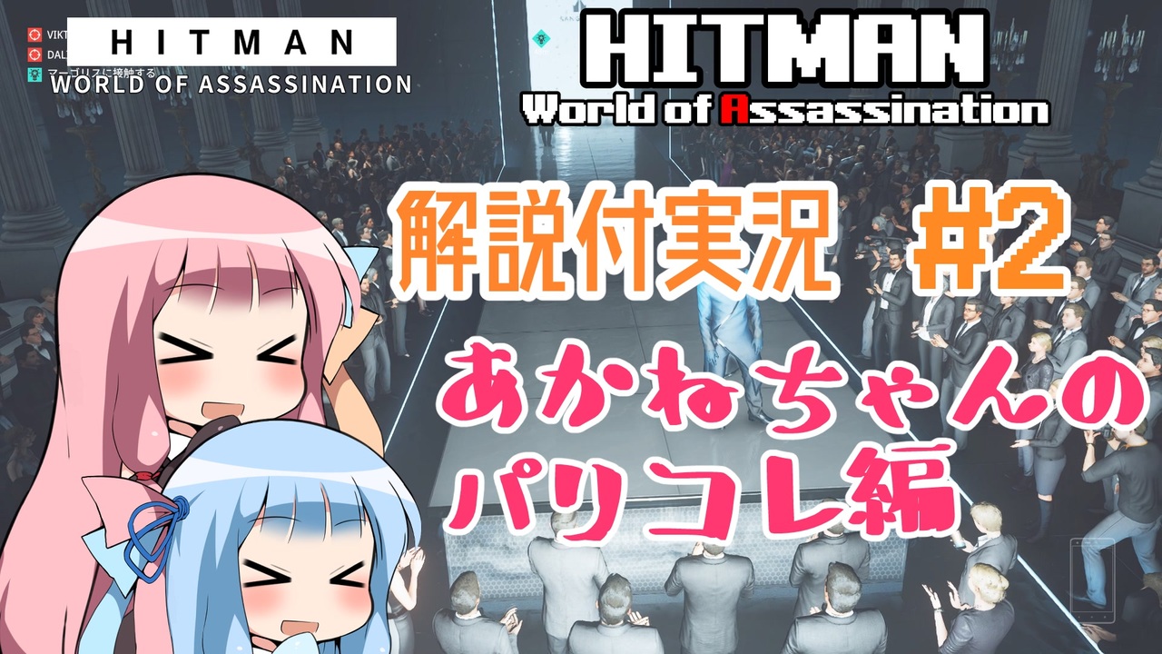 ムービーや字幕付きイベントがあるゲームの実況は初めてなので、なかなか尺の感覚が掴めなかったり。<br><br>各ミッションにつき、以下三本立てでお送りさせて頂きます。<br>1. 通常プレイ("サイレントアサシン"獲得前提)<br>2. 色んなイベント・アプローチ・小ネタ紹介(全ては無理ですがなるべく色々)<br>3. "サイレントアサシン・スーツオンリー(SASO)"獲得攻略の一例<br><br>※多忙につきゆっくりペースになることが予想されます。のんびりお待ち頂けましたら幸いです。<br><span style="color: #000000; font-size: 14px;">※PC(Steam)版、Deluxe Edition適用</span><br><br><a href="https://www.nicovideo.jp/watch/sm44864711" class="watch">sm44864711</a>:前 【<a href="https://www.nicovideo.jp/mylist/79109231" target="_blank" rel="noopener">mylist/79109231</a>】 次:<a href="https://www.nicovideo.jp/watch/sm44987853" class="watch">sm44987853</a><br><br>Spell Disk紹介・実況 → 【<a href="https://www.nicovideo.jp/mylist/77962904" target="_blank" rel="noopener">mylist/77962904</a>】<br>Splatoon3実況 → 【<a href="https://www.nicovideo.jp/mylist/74704258" target="_blank" rel="noopener">mylist/74704258</a>】<br>7Days to Die(α20)実況 → 【<a href="https://www.nicovideo.jp/mylist/72531669" target="_blank" rel="noopener">mylist/72531669</a>】<br>TerrariaVOICEROID実況 → 【<a href="https://www.nicovideo.jp/mylist/64460335" target="_blank" rel="noopener">mylist/64460335</a>】<br><span style="color: #000000; font-size: 14px;">その他VOICEROID実況 → 【</span><span style="color: #006699; font-size: 14px;"><a href="https://www.nicovideo.jp/mylist/64379408" target="_blank" rel="noopener">mylist/64379408</a></span><span style="color: #000000; font-size: 14px;">】</span><br><span style="color: #000000;">SCPゆっくり解説 → 【</span><span style="color: #006699; font-size: 14px;"><a href="https://www.nicovideo.jp/mylist/54980618" target="_blank" rel="noopener">mylist/54980618</a></span><span style="color: #000000; font-size: 14px;">】</span>