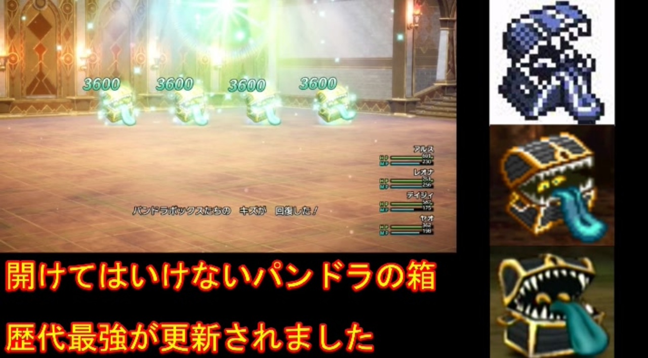 追加ダンジョンの奥へと向かいます。<br>ボス戦の曲じゃなかったので、完全に油断してましたね。<br><br>前→<a href="https://www.nicovideo.jp/watch/sm44877912" class="watch">sm44877912</a><br>次→<a href="https://www.nicovideo.jp/watch/sm44957645" class="watch">sm44957645</a><br>YouTube版→<a href="https://youtu.be/cqS7uzFPpdA" target="_blank" rel="noopener nofollow">https://youtu.be/cqS7uzFPpdA</a><br>現在投稿中のドラクエの縛りプレイ→<a href="https://www.nicovideo.jp/watch/sm43708158" class="watch">sm43708158</a><br>現在投稿中のクロノ・トリガーの縛りプレイ→<a href="https://www.nicovideo.jp/watch/sm43752866" class="watch">sm43752866</a><br><br>※ネタバレ注意です<br><br>この動画で利用している株式会社スクウェア・エニックスを代表とする共同著作者が権利を所有する著作物及びスギヤマ工房有限会社が権利を所有する楽曲の転載・配布は禁止いたします。<br>© ARMOR PROJECT/BIRD STUDIO/SPIKE CHUNSOFT/SQUARE ENIX<br>© SUGIYAMA KOBO<br>℗ SUGIYAMA KOBO<br><br>AquesTalk2ライセンスID:AQTK2WINUSR23122185<br /><br><br>❤いいねを押していただけるとモチベーションと投稿速度が上がるので宜しくお願い致します!<br><br>作者ツイッター→ <a href="https://twitter.com/nig0117" target="_blank" rel="noopener nofollow">https://twitter.com/nig0117</a><br>PIXIV FANBOX→ <a href="https://sutanokeiji.fanbox.cc/" target="_blank" rel="noopener nofollow">https://sutanokeiji.fanbox.cc/</a><br><br>( 以前はWEB小説書いてました→ <a href="https://kakuyomu.jp/works/1177354054884910267" target="_blank" rel="noopener nofollow">https://kakuyomu.jp/works/1177354054884910267</a> )