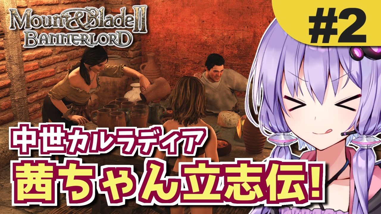 中世カルラディア世界が舞台の、騎士として戦乱の世を生き抜く戦略RPG「Mount & Blade 2」を、結月ゆかりさんと琴葉茜ちゃんがプレイします。<br>未プレイの初心者向けの丁寧な解説を加えてるのでプレイ済みの方々はご了承ください。<br>第2話はM&B2の野戦初戦闘! 果たして襲い来る倍の盗賊を撃退できるのか?<br><br>前 : <a href="https://www.nicovideo.jp/watch/sm44917454" class="watch">sm44917454</a> <-> 次 : (ちょっと待っててー)<br>このシリーズのリンク: <a href="https://www.nicovideo.jp/series/323444" target="_blank" rel="noopener">series/323444</a><br><br>■ プレイ環境: Mount & Blade 2 v1.2.10<br>・Fourberie (悪行コマンド多数追加)<br>・Detailed Character Creation(名前変更のみ使用)<br>・Marry Anyone (名前の通り)<br>・Improved Japanese Localization (数々の誤訳がなくなる)<br><br />HoI4プレイ講座 → (<a href="https://www.nicovideo.jp/mylist/62136132" target="_blank" rel="noopener">mylist/62136132</a>)<br>EU4プレイ講座→(<a href="https://www.nicovideo.jp/mylist/61049948" target="_blank" rel="noopener">mylist/61049948</a>)<br>CK3プレイ講座→(<a href="https://www.nicovideo.jp/series/191974" target="_blank" rel="noopener">series/191974</a>)<br>Stellarisプレイ講座→(<a href="https://www.nicovideo.jp/series/263583" target="_blank" rel="noopener">series/263583</a>)<br>Vic3プレイ講座→(<a href="https://www.nicovideo.jp/series/364690" target="_blank" rel="noopener">series/364690</a>)<br>赤いシムシティ実況動画 → (<a href="https://www.nicovideo.jp/series/8074" target="_blank" rel="noopener">series/8074</a>)<br>太閤立志伝5 DX実況動画→ (<a href="https://www.nicovideo.jp/series/323444" target="_blank" rel="noopener">series/323444</a>)<br>信長の野望 小田家プレイ動画 → (<a href="https://www.nicovideo.jp/series/353641" target="_blank" rel="noopener">series/353641</a>)<br>紲星あかりF1参戦記→(<a href="https://www.nicovideo.jp/series/222744" target="_blank" rel="noopener">series/222744</a>)<br>あかねとあかりのソビエト国境警備隊!→ (<a href="https://www.nicovideo.jp/series/394983" target="_blank" rel="noopener">series/394983</a>)<br>Cities: Skylines2都市開発プレイ動画 → (<a href="https://www.nicovideo.jp/series/436779" target="_blank" rel="noopener">series/436779</a>)<br>Manor Lords村作りプレイ動画 → (<a href="https://www.nicovideo.jp/series/468306" target="_blank" rel="noopener">series/468306</a>)<br>全動画投稿リスト (<a href="https://www.nicovideo.jp/user/77964272" target="_blank" rel="noopener">user/77964272</a>)